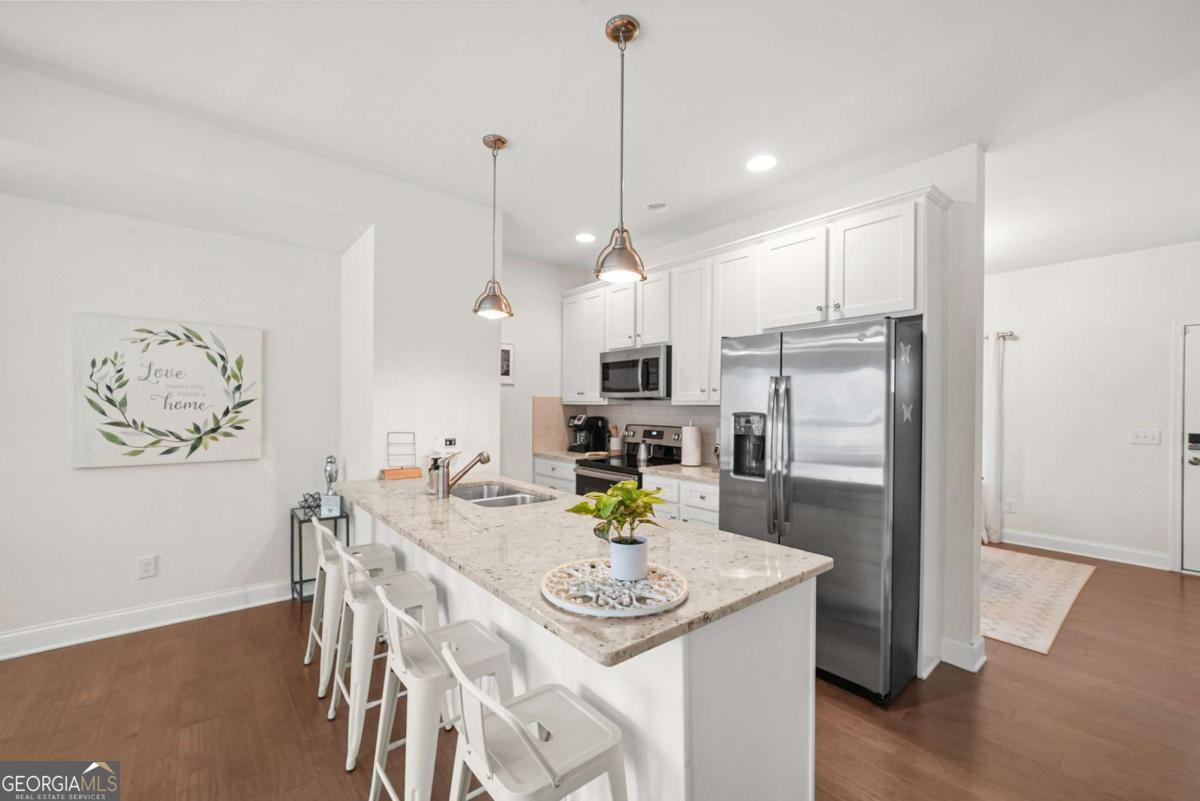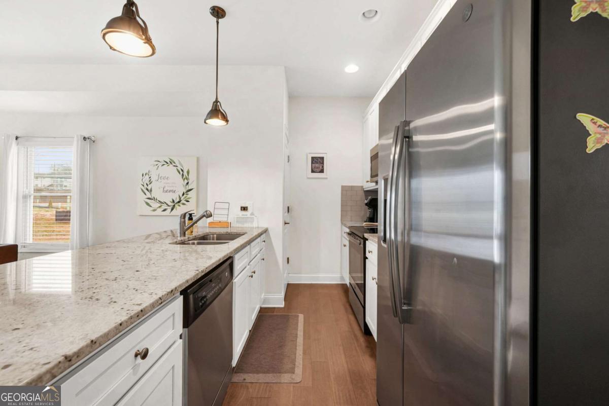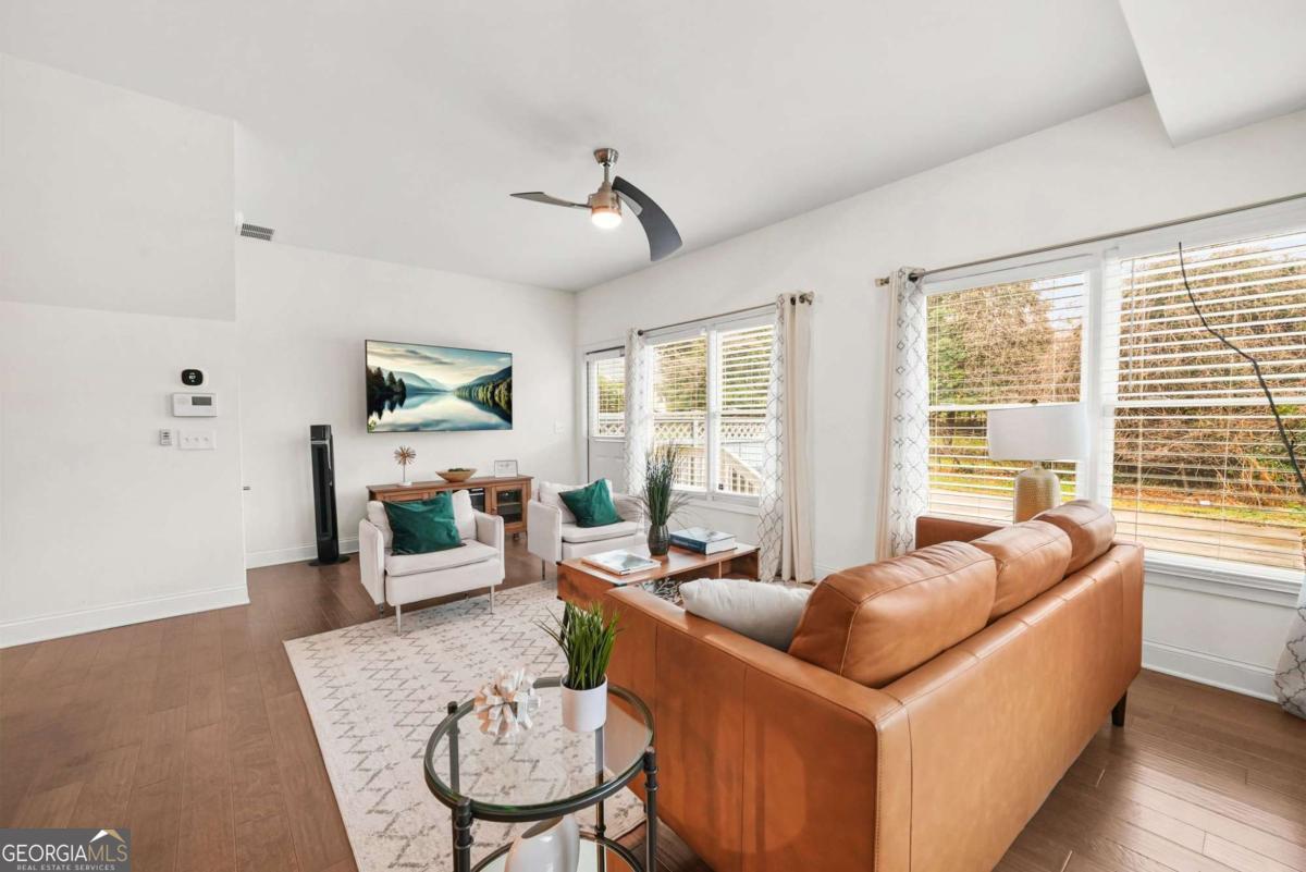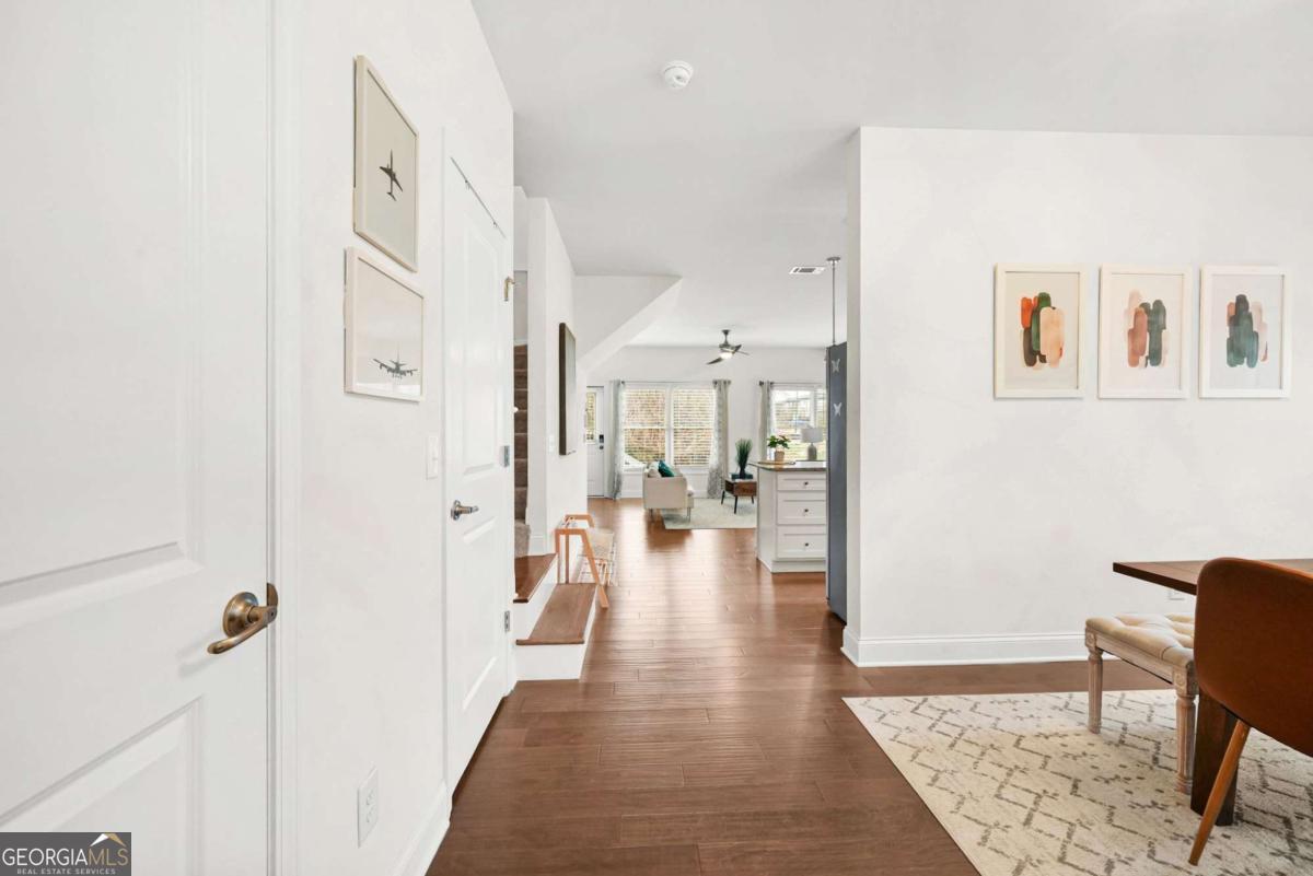 This three-story end-unit townhome in the heart of Hapeville offers space, light, and flexibility for buyers who want convenience without giving up character, especially if you're always on the go. The open main level is filled with natural light and panoramic views, creating an easy flow for everyday living or winding down after a long day. The kitchen anchors the space with white cabinetry, granite countertops, stainless steel appliances, and a breakfast bar that works for quick meals or casual entertaining. One of the standout features is the private third-floor suite, ideal for guests, a home office, or a quiet retreat away from the main living areas. The primary suite features a double vanity, walk-in closet, and a well-finished shower, offering comfort without high-maintenance living. Start mornings on the classic rocking-chair front porch and end evenings walking to local shops and restaurants in downtown historic Hapeville. This community feels personal, with regular events and the kind of "original Atlanta" energy people look for but rarely find. Location is the real power move here. You're minutes from Hartsfield-Jackson Atlanta International Airport, next to Delta Headquarters, and around the corner from the birthplace of the original Chick-fil-A. Add in the Porsche Experience Center, quick access to I-75/85, and an easy drive to Downtown Atlanta and Mercedes-Benz Stadium, and you've got a home that works as a true live-work-play base or a convenient crash pad for frequent travelers. Efficient, connected, and full of character, this home makes everyday life easier while keeping Atlanta right at your doorstep.