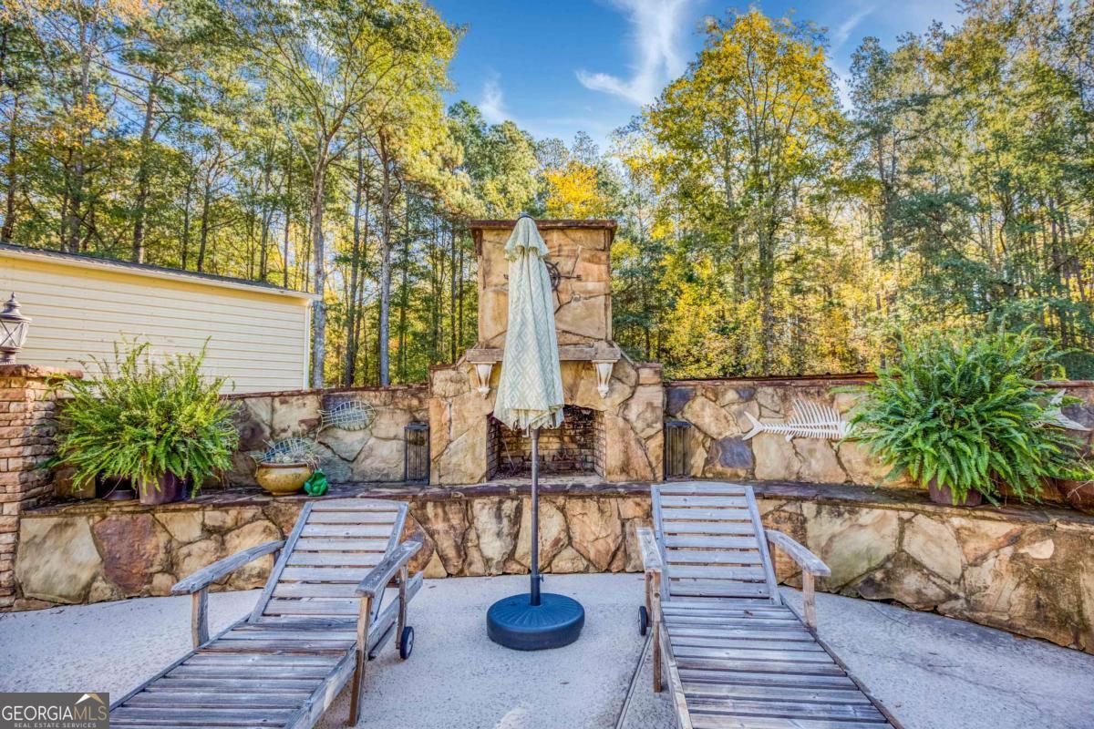 Welcome to this Beautiful Cape Cod on 2.4 acres in Social Circle! Private and wooded lot with rocking chair front porch opening into foyer and an open concept living space. Stacked stone fireplace in cozy but large family room that overlooks waterfall and koi pond in backyard. Open kitchen with newer Frigidaire appliances and breakfast bar. Breakfast room connects to huge dining room now being used as a game room holding a pool table. This large dining room extends the rear of home that peers into back porch with pristine salt water pool, outdoor stacked stone fireplace, waterfall, koi pond, outdoor lighting, covered areas with awnings, deck, wrought iron fencing and tons of room for entertaining. Primary suite also overlooks waterfall and koi pond and has an en suite that has been totally remodeled and updated. New Soaking tub, Vanity, massive walk in Shower, new Lighting, Fixtures and Flooring. 4th bedroom converted to a huge primary closet with built INS that stay with sale of home. Secondary bedrooms on opposite side of home along with a private office. New HVAC and 2 water heaters(one just for primary), Plantation shutters along all windows in rear of home. Lawn sprinklers too! Workshop can house an RV but now has a 10k car lift, air compressor, electrical, HVAC. It is on a 30X40 slab and has a 14X12 front roll up door and a 6X6 roll up door in back along with a single side door. Other exterior features are a separate outbuilding, underground fencing for dogs, outdoor lighting, dog run and space for an outdoor kitchen.