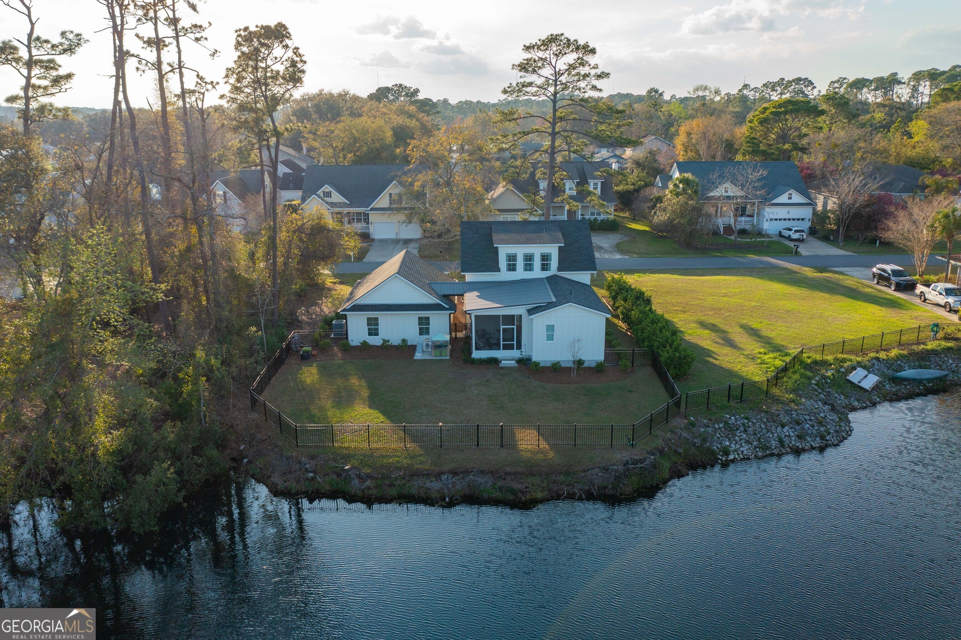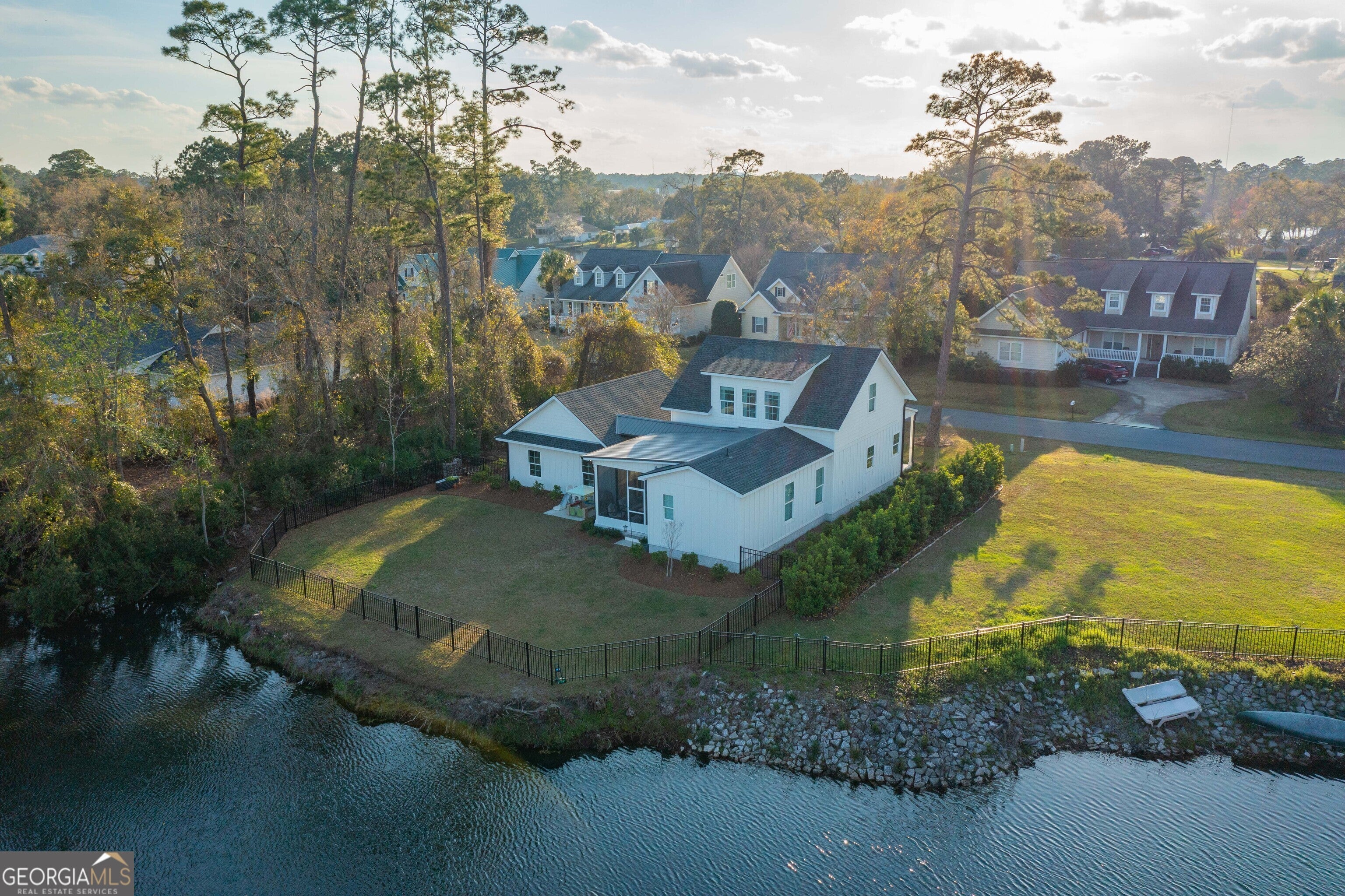 Everyday life feels effortless when you're surrounded by comfort, and that's exactly what you'll find in this gorgeous Traditional-Contemporary home. The main living area exemplifies harmony, featuring an open, airy floor plan that flows beautifully for both everyday living and entertaining. This home as an added amenity - storage, storage, storage in both the interior living area and garage area. Enjoy breathtaking sunrises and sunsets over the serene lake - your back-view feels truly like a million-dollar escape. Tall ceilings and expansive windows fill the home with natural light, enhancing the spacious and inviting atmosphere. The kitchen and cabinetry are designed for luxurious daily living, complete with a bar perfect for quick meals, casual conversations, or hosting gatherings. This property offers exceptional convenience, with easy access to daily amenities and just a short drive to the beaches and marinas of St. Simons and Jekyll Island. You're also minutes from I-95, as well as a variety of shopping and dining options available in downtown Brunswick as well. The location provides a peaceful, private setting with a touch of country charm, while still keeping you close to everything you need. If you're seeking a custom home that delivers comfort, showcases stunning coastal landscapes, and offers a lifestyle that feels like art, this property is it. The neighborhood is welcoming and known for its friendly neighbors - all while you enjoy the tranquility of your backyard lake.