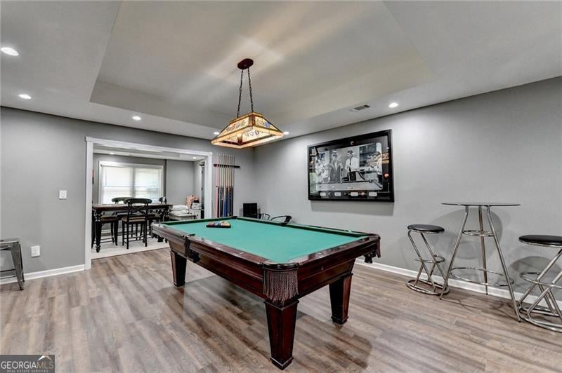 Stately 6-bedroom, 5-bath executive home built by award-winning builder John Wieland Homes - a name synonymous with luxury, premium materials, and quality craftsmanship. Situated on a desirable north-facing homesite in the prestigious Woodmont Golf & Country Club, this 3-sided brick residence offers main-level guest/bedroom with full bath, side-entry garage, and sophisticated design throughout. The oversized kitchen features granite countertops, double ovens, gas cooktop and center island that opens to the vaulted-ceiling family room anchored by a wood-burning fireplace - all hallmarks of John Wieland's signature attention to finish and flow. The fully finished terrace level includes a media room, game room, deluxe wet-bar/kitchenette, full bath and bedroom - plus a large unfinished area ready for home gym, studio or storage. Outdoor living takes center stage with expansive decking, private cabana, built-in hot tub and fire-pit, overlooking a fully fenced backyard. Coupled with the rocking-chair front porch, the home blends elegance with lifestyle. Located in one of Cherokee County's most sought-after school districts and within a vibrant club-community offering championship golf, lighted tennis courts, resort-style pool with water slide and country-club amenities. More than a home - it's a John Wieland home crafted for the luxury lifestyle you deserve.