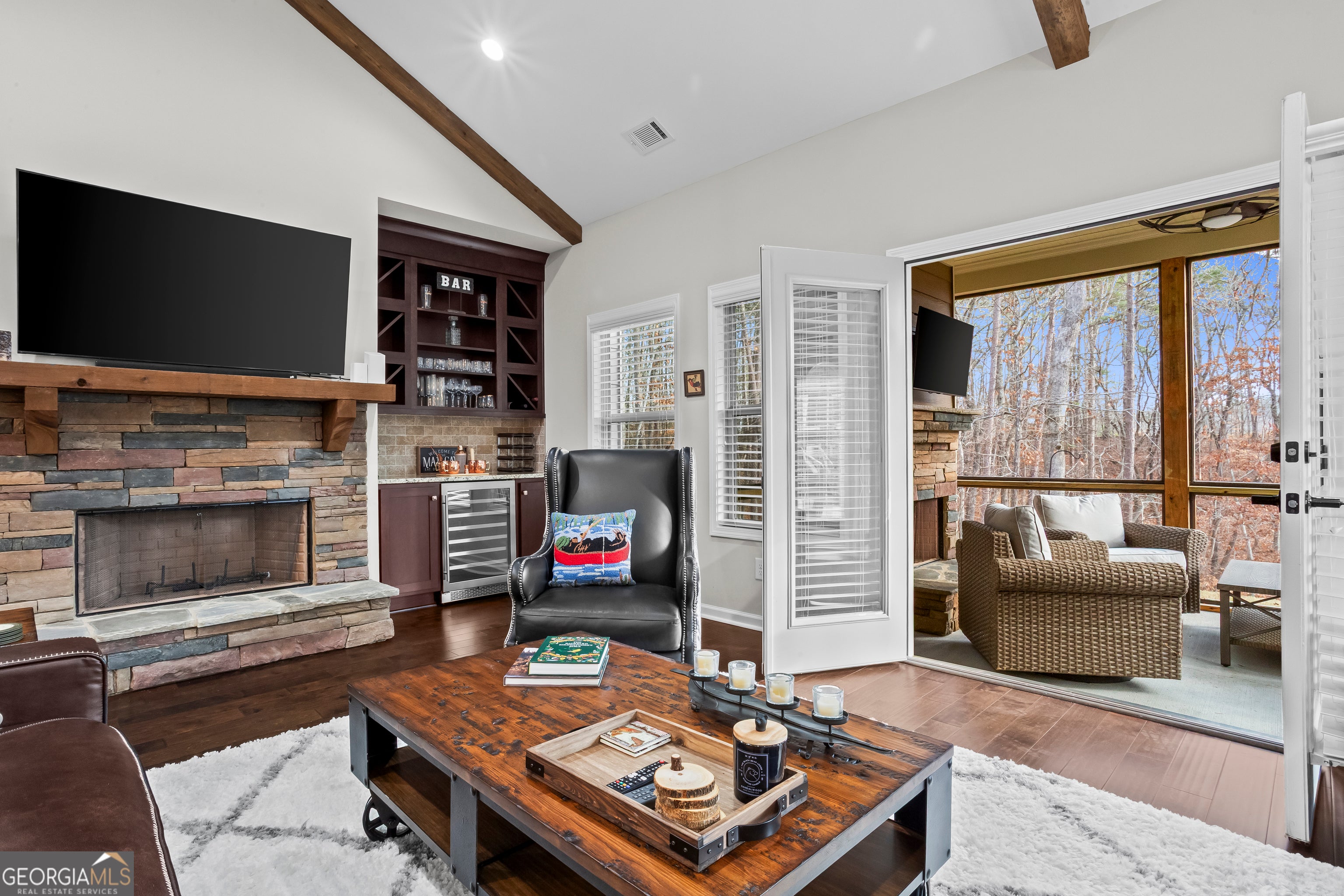 Welcome to a place where everyday life feels like a retreat. Tucked away on a quiet cul-de-sac in the prestigious gated community of Lake Arrowhead, this stunning custom-built home offers privacy, space, and a deep connection to nature on over two beautifully wooded acres. From the moment you arrive, there's a sense of calm, of leaving the world behind and coming home to something special. Inside, vaulted ceilings with exposed beams create warmth and architectural character, while natural light fills the open living spaces designed for gathering, relaxing, and making memories. The thoughtfully designed floor plan features 5 bedrooms and 3 full bathrooms, with multiple bedrooms on the main level, including a serene primary suite that feels like a private sanctuary. Wake up to quiet mornings, unwind in the evening, and enjoy the ease of main-level living. A dedicated formal office provides the perfect space to work from home in peace, surrounded by comfort and style. Step outside to the screened-in porch, where cozy evenings come alive beside the outdoor fireplace, favorite shows play on the TV, and conversations linger late into the night. Whether hosting friends, or simply listening to the sounds of nature, this space is where moments turn into memories. Beyond the home, Lake Arrowhead offers a lifestyle unlike any other, a 540-acre crystal-clear lake, marina, championship golf course, clubhouse, pools, tennis and pickleball courts, scenic hiking trails, and a vibrant social community. Whether your ideal day includes boating at sunrise, golfing in the afternoon, or quiet sunset walks by the water, it's all right outside your gate. This is more than a home-it's a place to slow down, spread out, and truly live. A rare opportunity to own a custom residence where luxury meets tranquility in one of North Georgia's most sought-after communities.