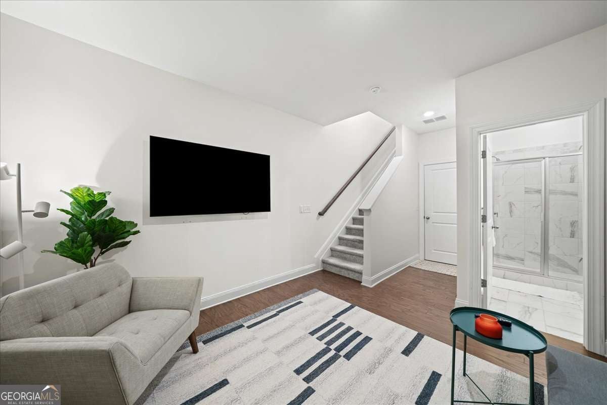 Modern luxury meets everyday convenience in this beautifully maintained townhome at Reverie on Cumberland, just moments from historic Vinings. Steps from the community's resort-style pool, cabanas, and tanning ledge, this is the only Brycen floor plan currently available and was newly constructed in 2021 by Ashton Woods. Thoughtful design and natural light fill the home with warmth. The open concept main level makes entertaining effortless, connecting the kitchen, dining, and living areas in a clean, functional layout. The kitchen shines with quartz countertops, 5-burner gas cooktop, stainless appliances, and an oversized island ideal for prepping, hosting, or casual meals. A covered deck extends your living space outdoors for morning coffee or a wind-down drink at dusk. Upstairs, the primary suite serves as a true retreat with a spa-inspired bath, walk-in closet, and double vanity. The secondary bedroom features its own private bath, with laundry conveniently located in the hallway. The terrace level offers a versatile bonus room plus a full bathroom, perfect for a home office, media lounge, or guest space. A one-car garage and level driveway provide parking and storage flexibility. Residents enjoy an impressive amenity package including a multi-level clubhouse with lounge and catering kitchen, 24/7 fitness center, grilling areas, greenspace, and fire pit. Everyday errands are a breeze with Publix, Home Depot, and Cumberland Mall just minutes away. Vinings Jubilee and West Village dining and shops are within a mile, with quick access to I-285, I-75, The Battery & Truist Park, and more. Move-in ready and situated in one of the most desirable pockets of Vinings, this home delivers the best of low-maintenance living without compromising style or convenience to the City & Hartsfield-Jackson Airport.