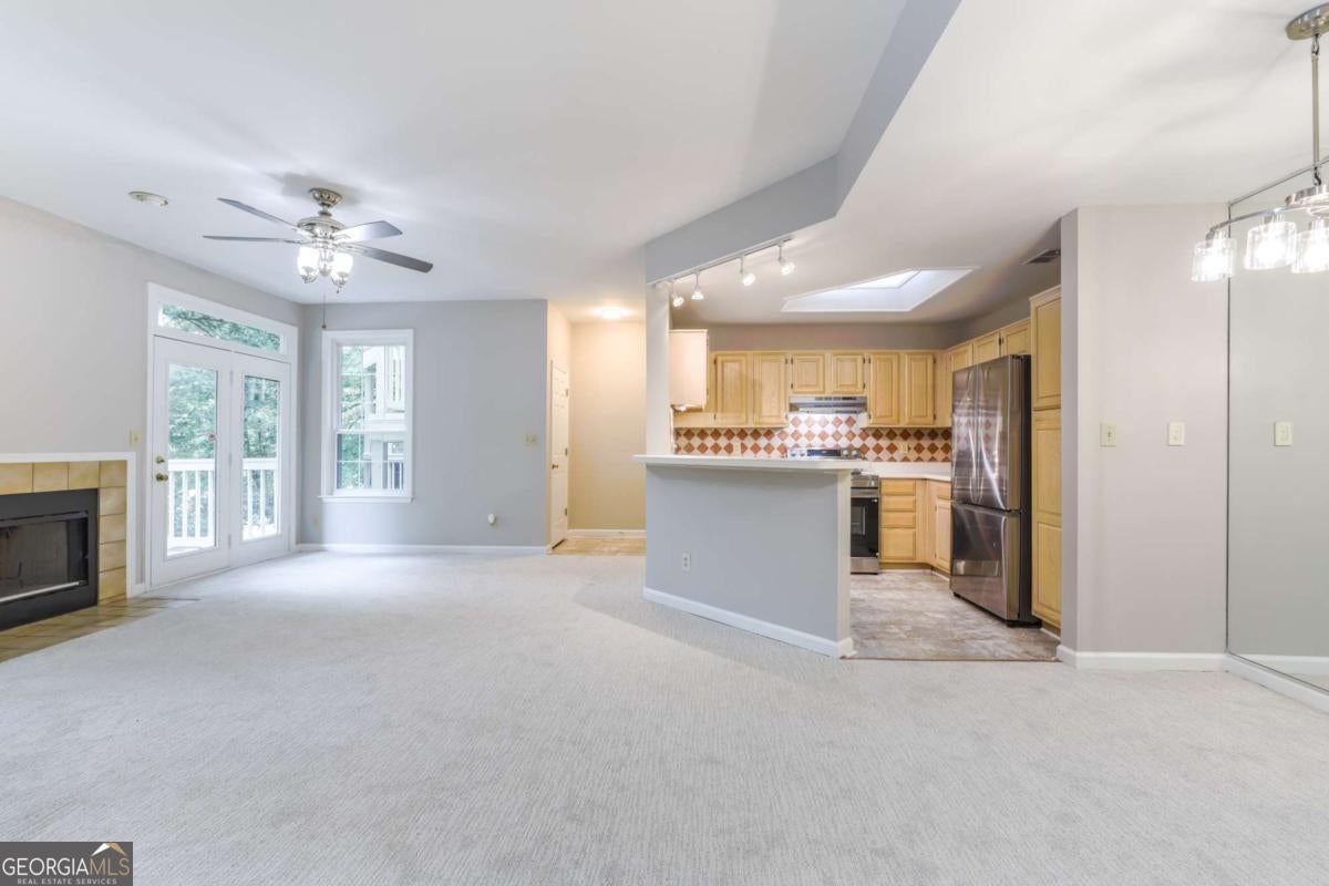 This lovely one bedroom condo in downtown's idylic McGill Park has fresh paint and new carpeting throughout the unit. An open-concept plan leaves the main living areas soaked in sunlight, including the living room with fireplace, dining area + kitchen with brand new stainless appliances and a tile backsplash. The unit's bedroom is well-sized with a pass-through closet with direct access to the bathroom, featuring tile tub surround. There's a large patio and storage closet, too. This beautiful community is full of mature trees and amenities including pool, gym + EV chargers.