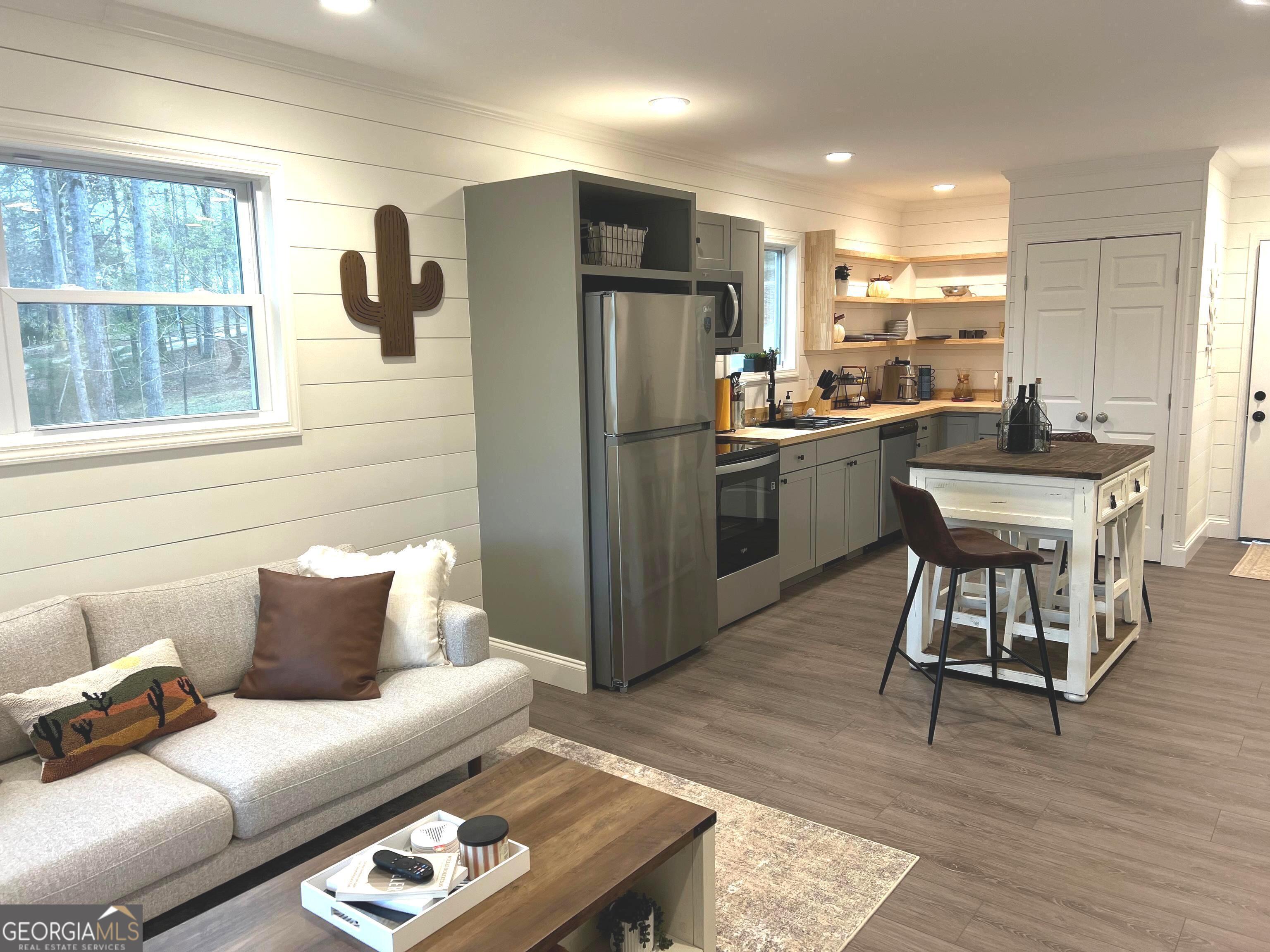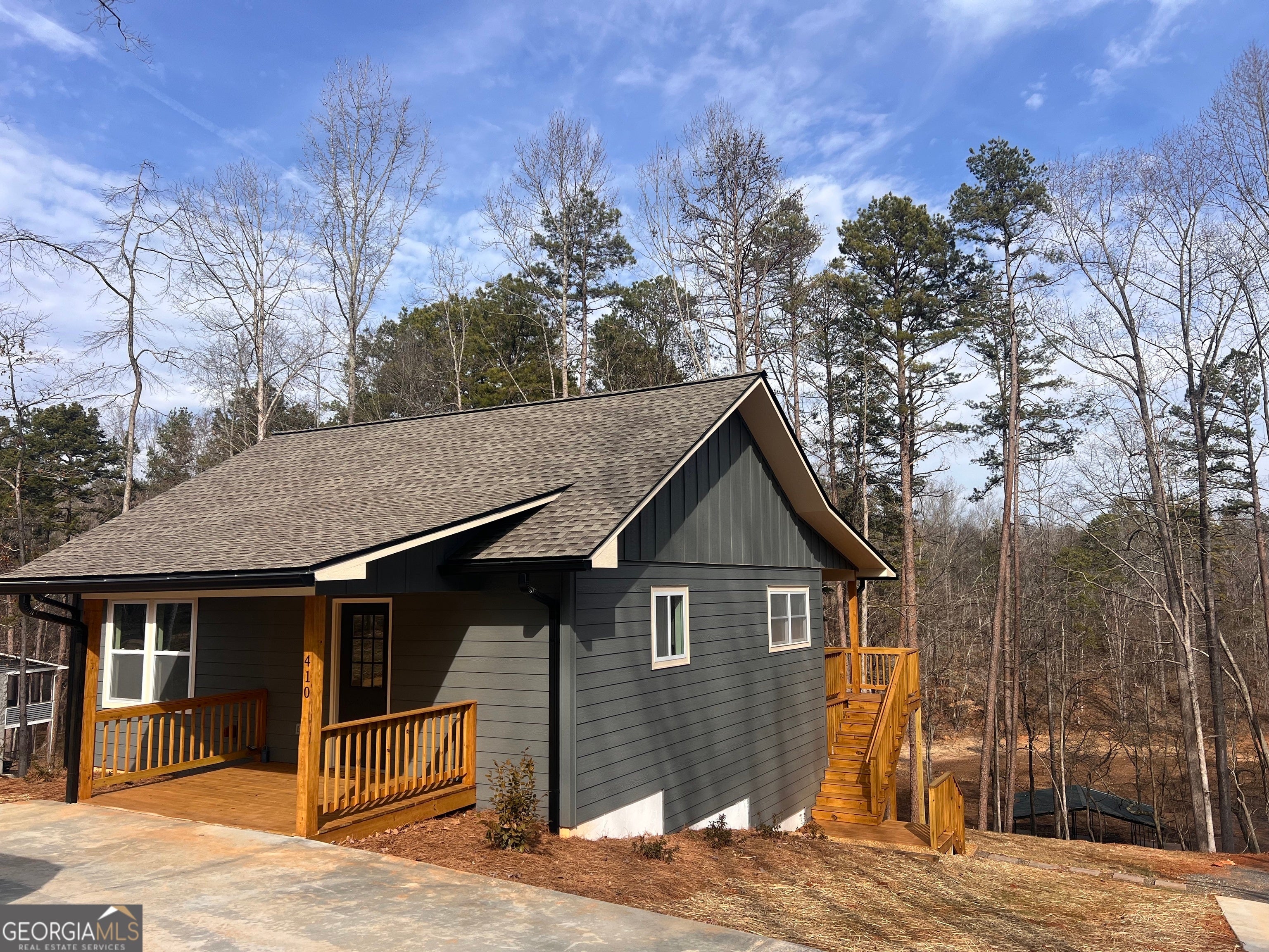 Located on a .46-acre lakefront lot in Martin, GA, 410 Lakeside Hills Rd offers new construction quality paired with the natural beauty of Lake Hartwell. This 2-bedroom, 2-bath residence is positioned in a quiet cove, providing privacy and reduced lake traffic while maintaining direct water access and expansive lake views. This home was carefully crafted, and no detail was missed. The home features a large front porch overlooking the lake, creating a welcoming outdoor living space that enhances the property's connection to its surroundings. The porch is well-suited for daily use and entertaining, offering a clear view of the water and the peaceful setting beyond. Inside, the floor plan is thoughtfully arranged to maximize comfort, functionality, and natural light. As a new construction home, the interior showcases clean lines, modern finishes, and efficient use of space. The living areas feel open and cohesive, while both bedrooms are comfortably sized and supported by two full bathrooms with contemporary styling. The layout supports everyday living while maintaining a relaxed and practical flow. A key feature of this property is the double-slip boat dock, providing convenient access to Lake Hartwell for boating, fishing, or recreational use. The dock, combined with the home's location in a low-traffic cove, makes this property especially appealing for those seeking a calm and private lake experience. This home is move-in ready and well-suited for those seeking a lakefront property that balances comfort, privacy, and direct access to Lake Hartwell. All of this and no HOA. Make this your weekend getaway, permanent residence or add this to your income-producing portfolio.