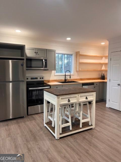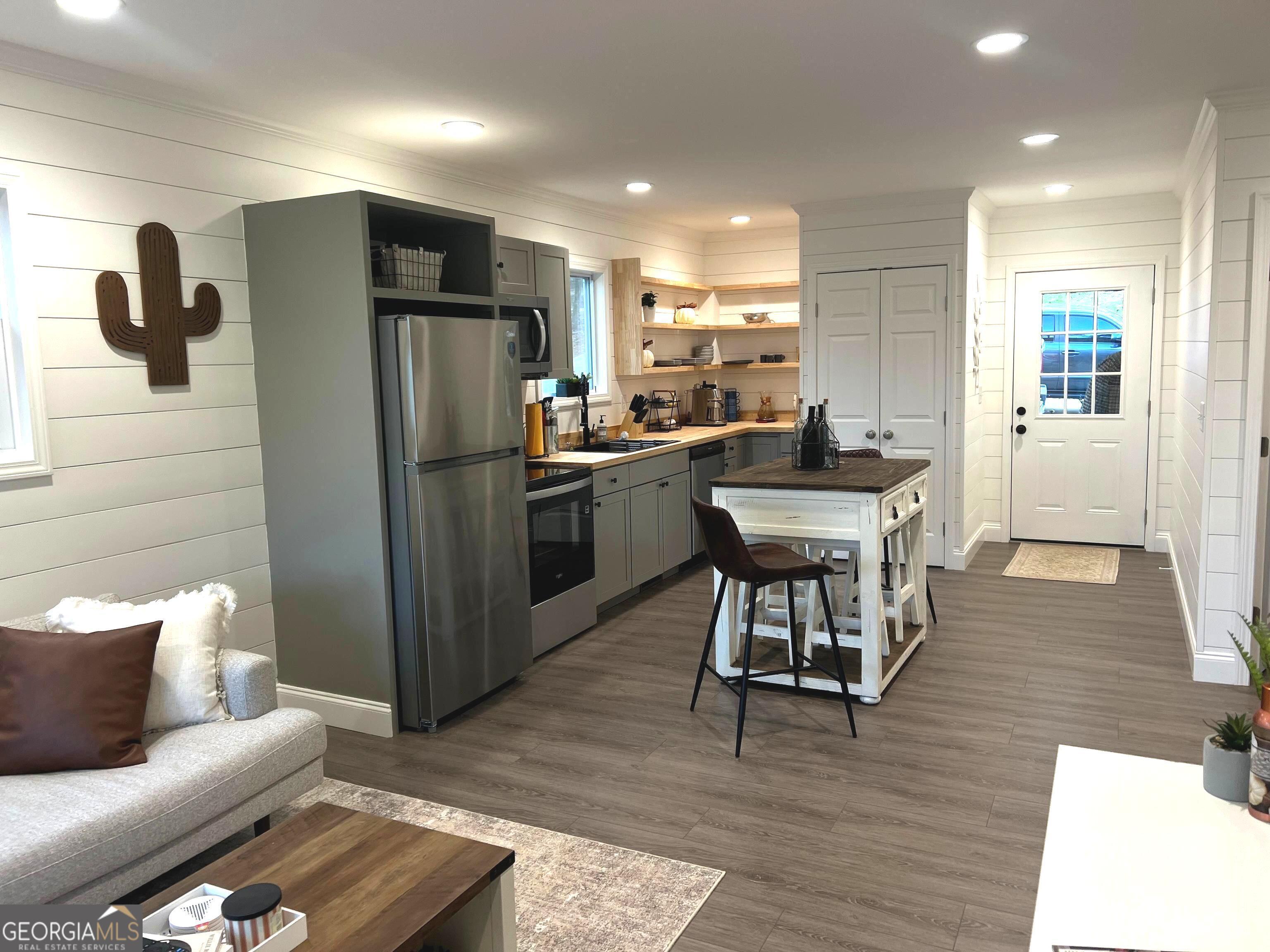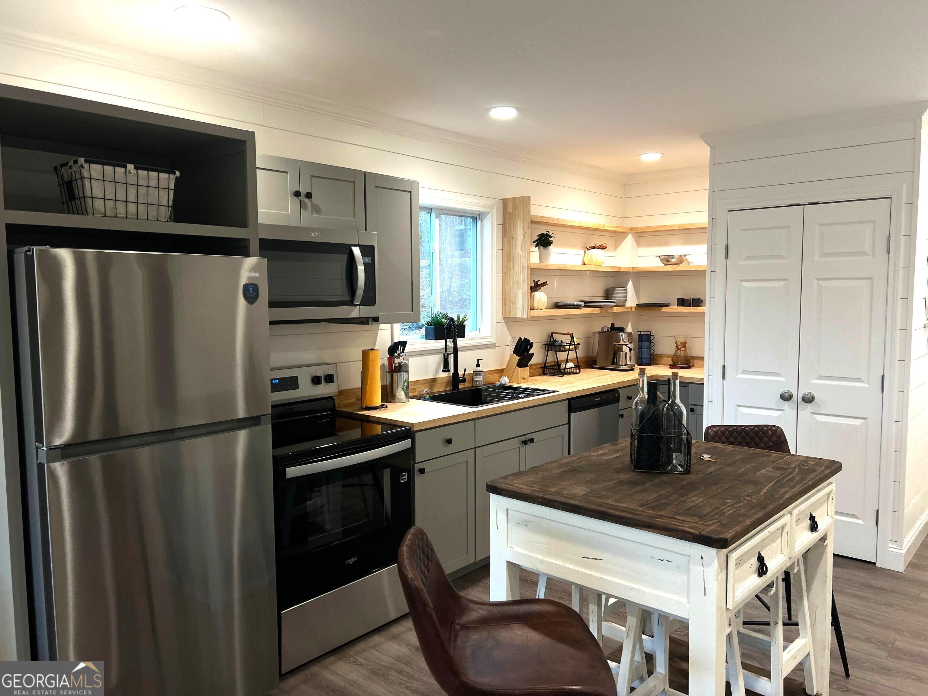 - AppliancesDishwasher, Electric Water Heater, Microwave, Oven/Range (Combo), Refrigerator, Stainless Steel Appliance(s)
