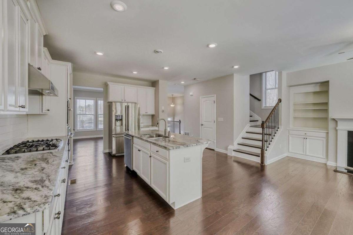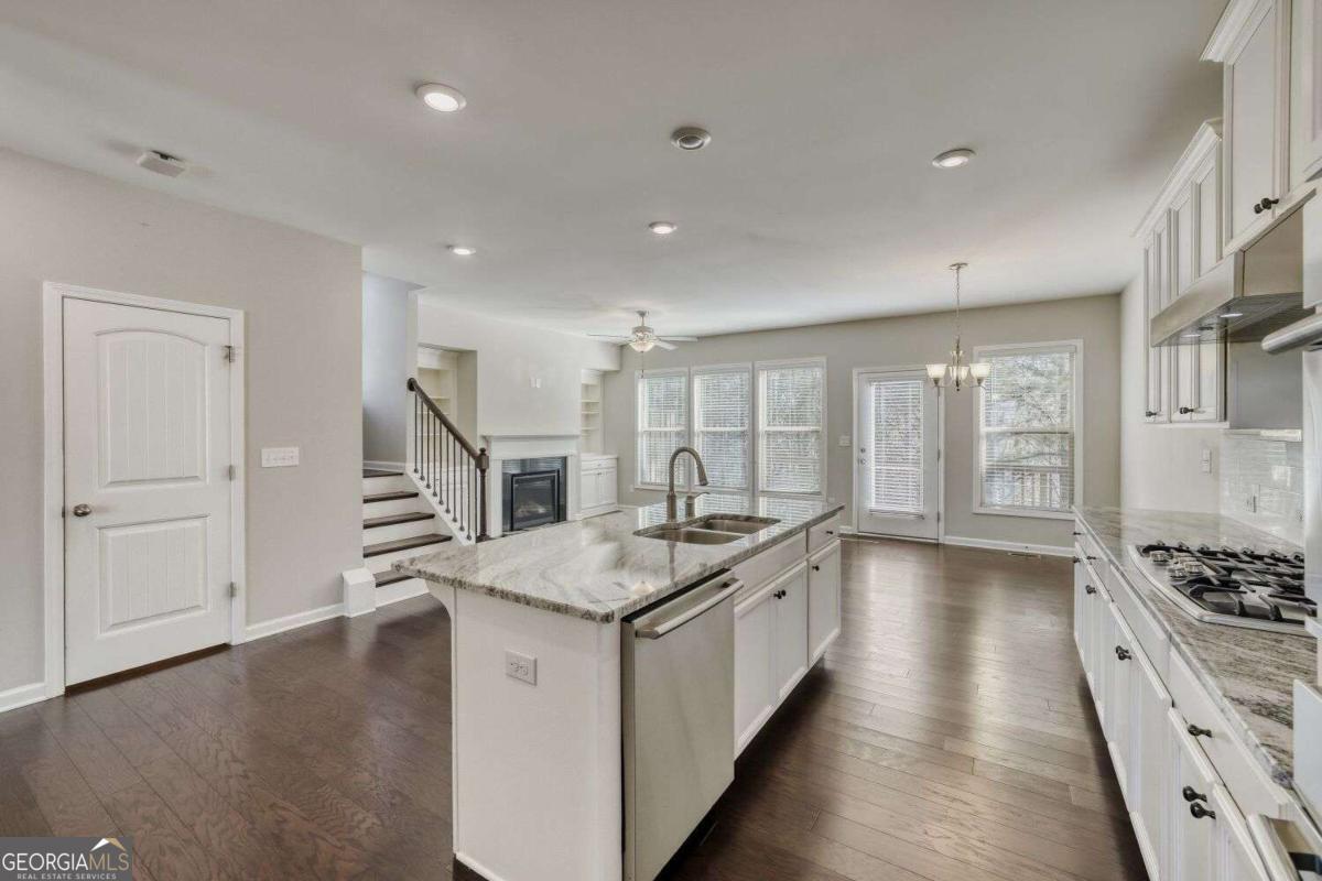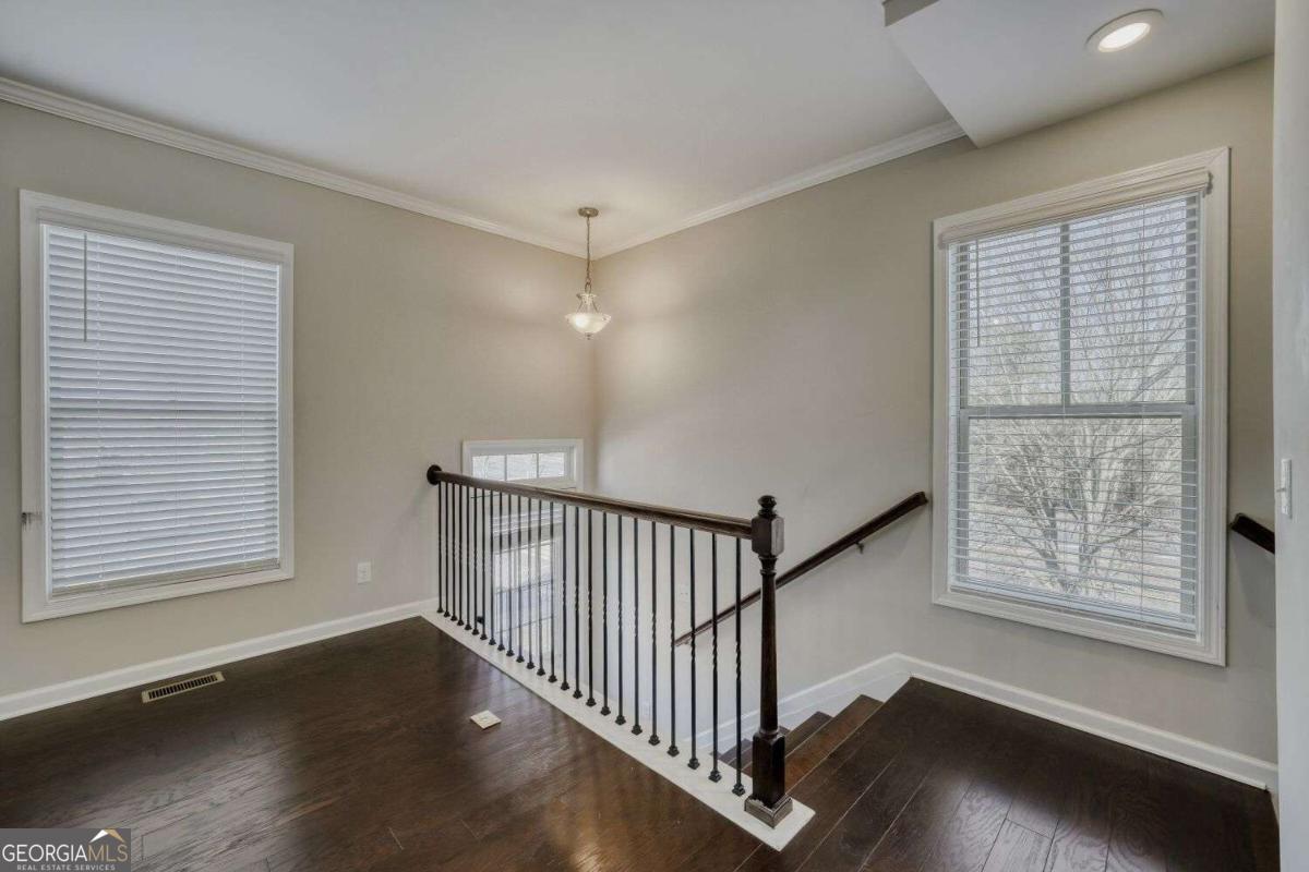 Amazing rental - all brick townhouse, end unit in fabulous location with spacious floor plan! 3 levels, 2 car garage. Tons of guest parking. Corner of Peachtree Industrial Blvd & McGinnis Ferry Rd. Hardwoods throughout the main level, steps and lower level hallway. Two spacious bedrooms upstairs, plus one large master bedroom with an ensuite bathroom. Hallway laundry closet with washer and dryer included. Beautiful bookshelves on main. Gourmet kitchen with gas cooktop, upgraded granite countertops, custome cabinets, beautiful backsplash, vent hood, stainless steel appliances. Exterior entry in terrace level with full bedroom, bathroom, hallway and garage entry. Tons of storage. Close to Shopping & Restaurants. Hurry!! This won't last long.