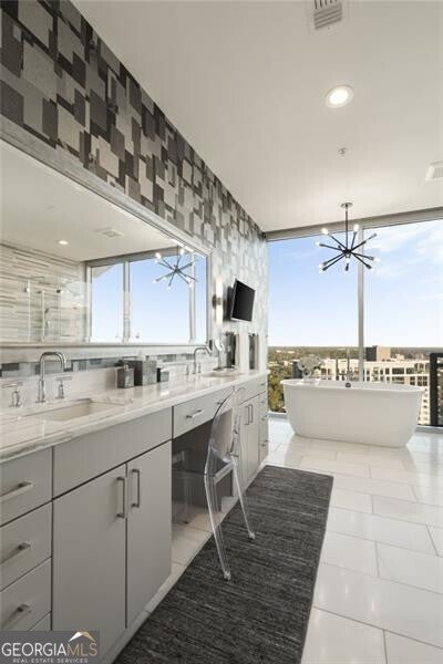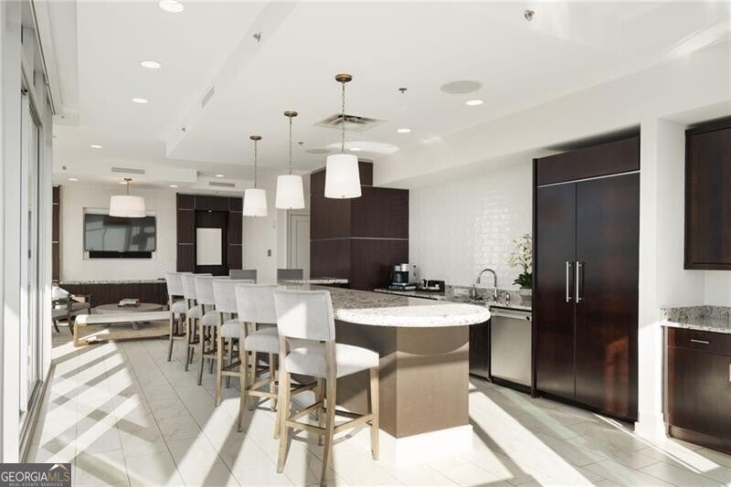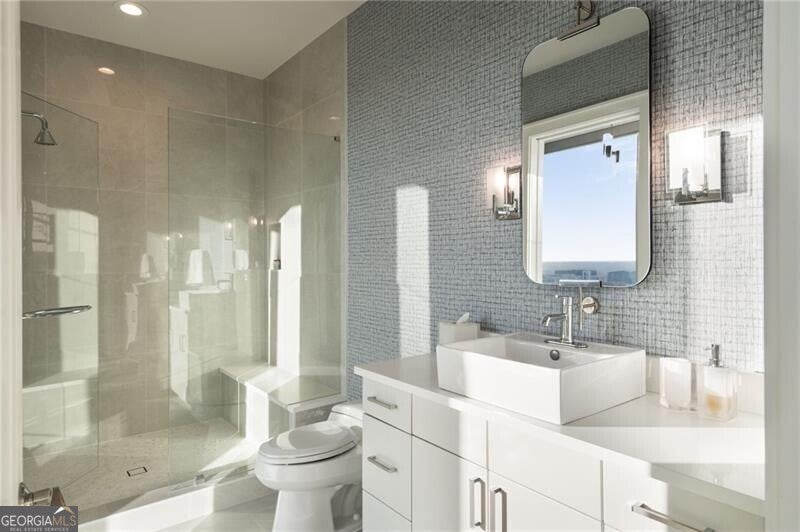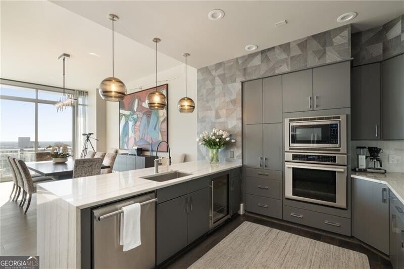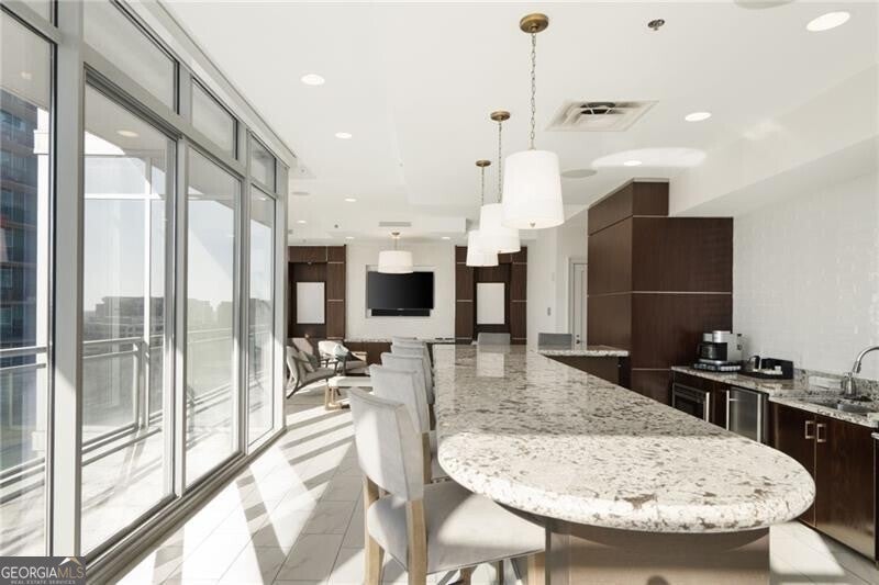 Perched more than 500 feet above Peachtree Street, this exclusive penthouse-level residence crowns the skyline above the Loews Hotel in the heart of Midtown Atlanta. This stunning 3-bedroom, 3.5-bath corner penthouse offers breathtaking, unobstructed views spanning Midtown, Piedmont Park, Mercedes-Benz Stadium, Buckhead, Stone Mountain, and beyond. Just under 3,000 square feet, the residence presents a rare opportunity as a refined in-town pied- -terre or a highly desirable income-producing asset. Designed for effortless sophistication, the home features soaring 10-foot ceilings, expansive floor-to-ceiling windows, integrated lighting, motorized custom shades, advanced sound and climate systems, and bespoke hardwood flooring throughout. The chef's kitchen is appointed with quartz waterfall countertops, custom cabinetry, and a full suite of Thermador stainless steel appliances, including a built-in wet bar and beverage refrigerator-perfect for entertaining or unwinding in elevated style. The thoughtfully designed floor plan separates the primary suite from guest bedrooms and den via a gracious gallery hall, creating private, ensuite living spaces ideal for both owners and guests. The primary bath delivers spa-level luxury with a soaking tub, double vanities, a frameless glass shower, and dual access to a custom owner's closet. Additional highlights include a flexible den ideal for a media room or private office, a separate powder room, and a dedicated laundry room. Residents enjoy 24/7 concierge service, a resort-style pool, club room, and shared access to the Exhale gym and spa, along with hotel amenities and in-residence room service. Ideally located at 1065 Midtown, the building is surrounded by over 150 restaurants and bars, Whole Foods, the High Museum, Fox Theatre, Colony Square, Politan Row, and premier shopping and entertainment. Just steps from Piedmont Park-Atlanta's 189-acre "Central Park"-residents enjoy year-round festivals, weekly programming, and a vibrant urban lifestyle at its finest.