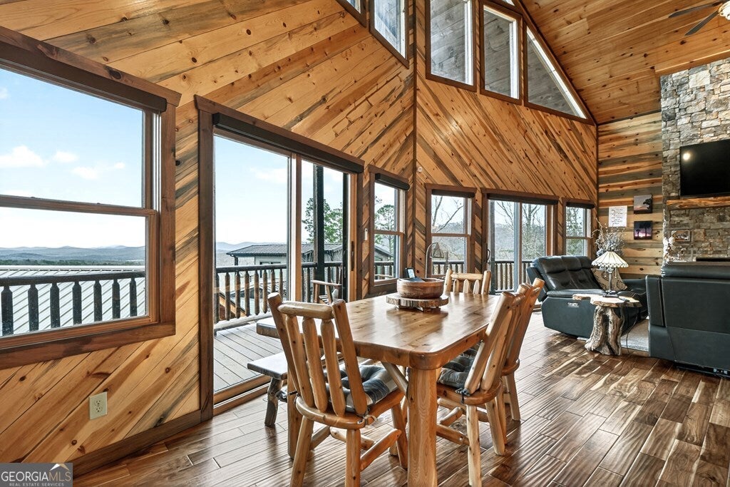 Welcome to 467 Deer Crest Road, a stunning prow-front cabin offering year-round long-range mountain views and Lake Blue Ridge views. This log and timber-style home is ideally located near Blue Ridge, GA all paved access- just minutes from hiking trails, biking, outdoor recreation, and Lake Blue Ridge access-perfect as a primary residence, second home, or short-term rental investment. The open-concept great room features vaulted cathedral ceilings, a floor-to-ceiling stacked stone fireplace, hardwood floors, and a dramatic wall of windows capturing breathtaking mountain and lake vistas. The main-level primary suite offers privacy and comfort, while the well-appointed kitchen is ideal for entertaining. The home includes three private bedroom suites, an additional sleeping areas , and a finished terrace-level den with wet bar and walk-out access, making it ideal for large families or rental guests. Outdoor living shines with an expansive covered party porch featuring a wood-burning fireplace and uninterrupted year-round mountain and Lake Blue Ridge views. Additional features include a double carport, ample parking, and meticulously maintained lodge-style craftsmanship. Whether you're searching for a luxury mountain cabin, Blue Ridge lake-view home, or income-producing vacation rental, this exceptional property delivers location, views, and lifestyle.