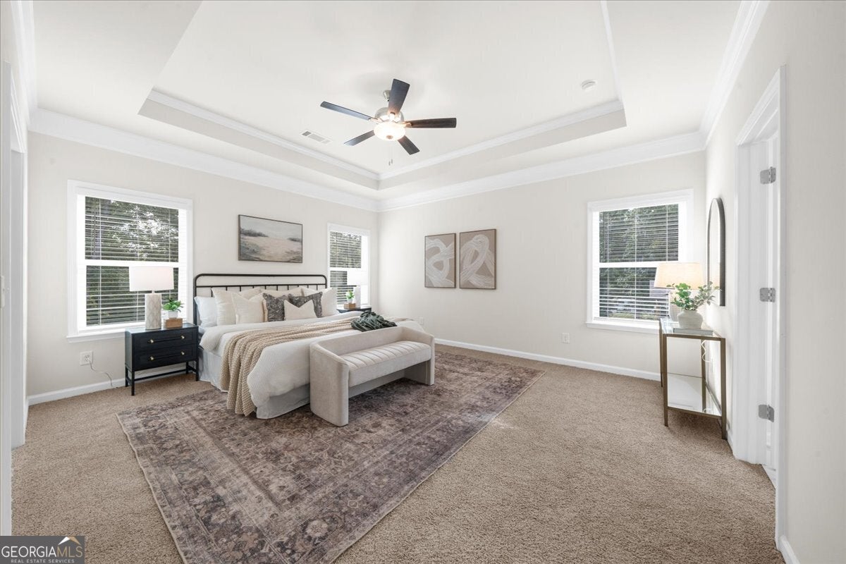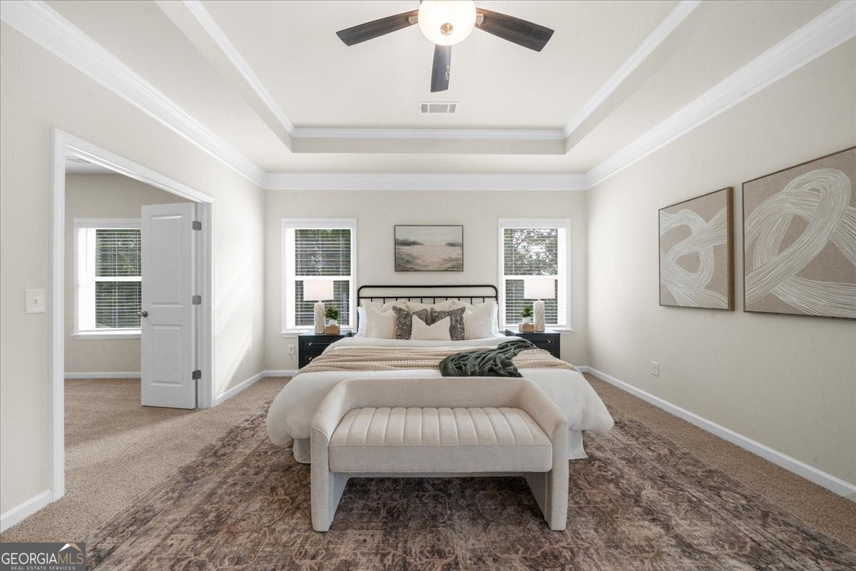 - Interior FeaturesBookcases, Double Vanity, High Ceilings, Pulldown Attic Stairs, Split Bedroom Plan, Tray Ceiling(s), Walk-In Closet(s)