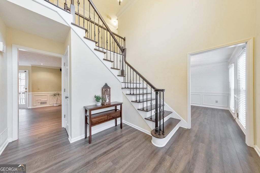 Welcome to this beautifully updated and meticulously maintained 4 bedroom, 3.5 bathroom brick-front home in the desirable Regents Park community, perfectly situated in the heart of East Cobb. A grand two-story foyer welcomes you inside, flanked by a formal sitting room-ideal for a home office-and a separate dining room perfect for entertaining. The cozy fireside family room flows seamlessly into the bright, updated kitchen featuring white cabinetry, stone countertops, stainless steel appliances, a center island, and a sunny breakfast room. A half bathroom and a separate laundry room complete the main level. Upstairs, retreat to the expansive primary suite with a sitting room, multiple closets, and a spa-like ensuite bath offering double vanities, a whirlpool tub, and a separate shower. Three generously sized secondary bedrooms share a full hall bathroom. The finished lower level adds incredible versatility with a large bonus room complete with a wet bar and walkout access to the backyard, a separate flex room ideal for an additional bedroom, gym, or office, and a full bathroom. Enjoy outdoor living on the large rear deck overlooking the spacious backyard, and take advantage of the attached two-car garage. Located in the top-rated Pope High School district, this home offers unbeatable convenience to Marietta Square, Avenue East Cobb, and an abundance of shopping, dining, and everyday amenities. This is a rare opportunity to own a move-in-ready home in one of East Cobb's most sought-after communities!