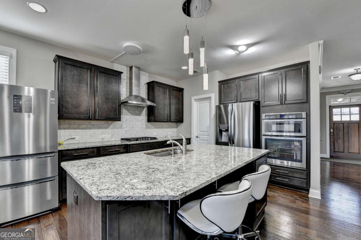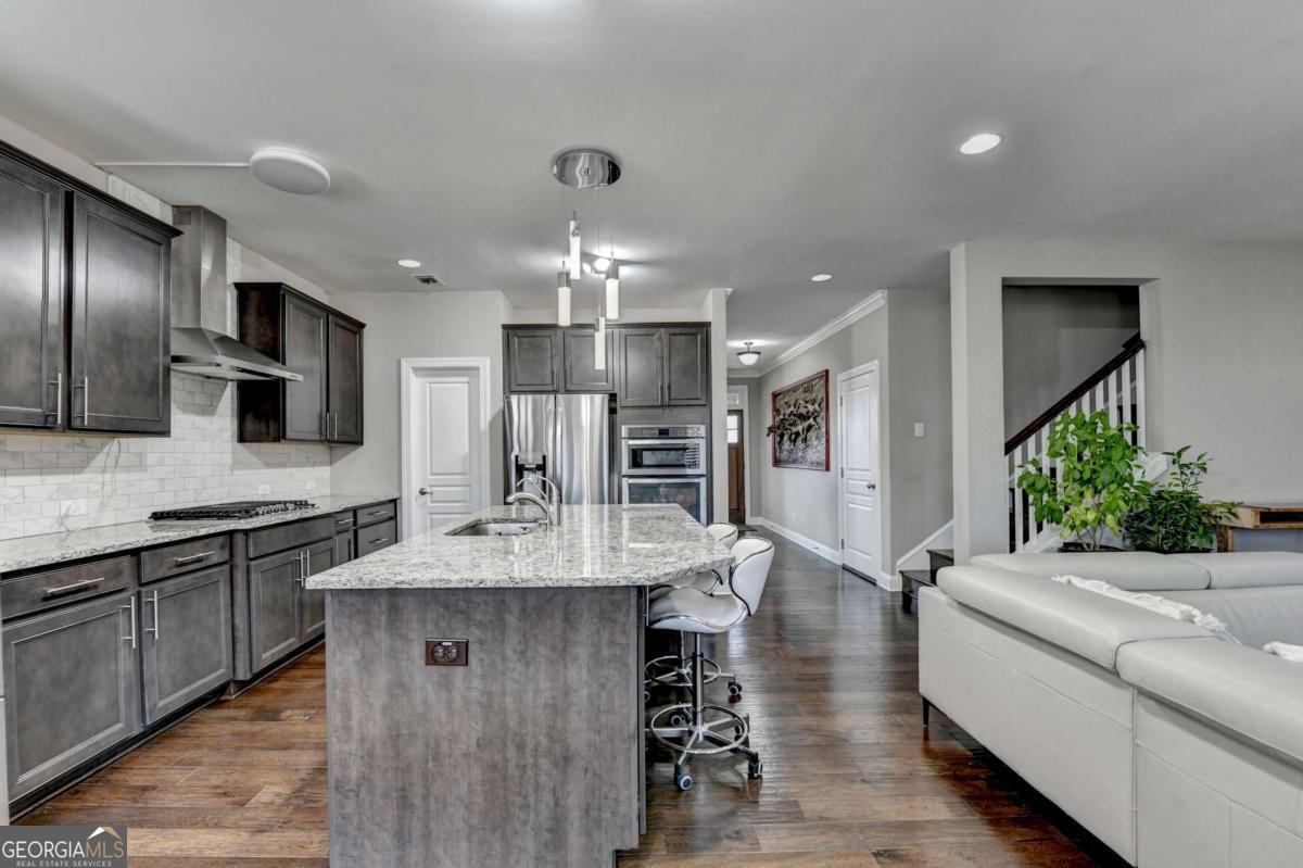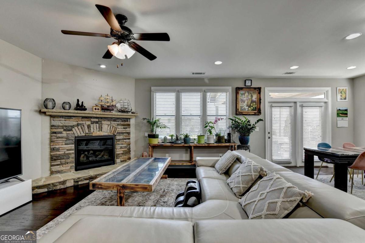 Beautifully maintained brick-front home located in one of Suwanee's most sought after communities. This property truly has everything you've been looking for and more. Step through the welcoming front entry to find high quality hardwood floors and an open, inviting floor plan. The main level features separate living and dining rooms, along with a convenient guest suite with a full bath. Upstairs, you'll find a spacious flex room-perfect for a media room, playroom, or even an additional bedroom. The chef's kitchen offers a large island with stone countertops, cabinet organizers, and a generous walk-in pantry. Enjoy a huge, private, level backyard, ideal for outdoor entertaining, play, gardening, or simply relaxing in your own peaceful retreat. Community amenities include a beautiful swimming pool, tennis courts, walking trails with pocket park, and a playground. Ideally located near top-rated schools, shopping, restaurants, and parks, this home offers both comfort and convenience.