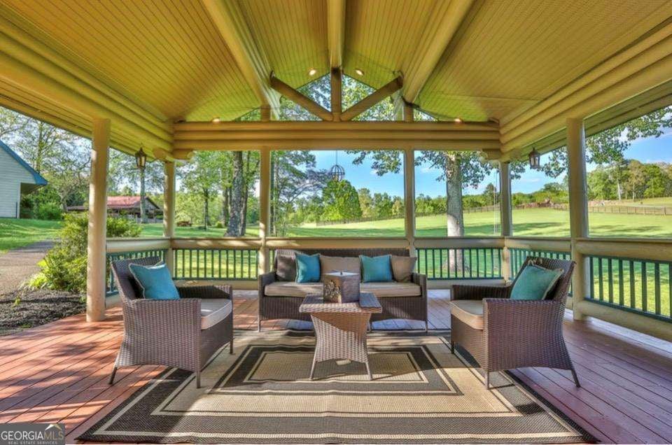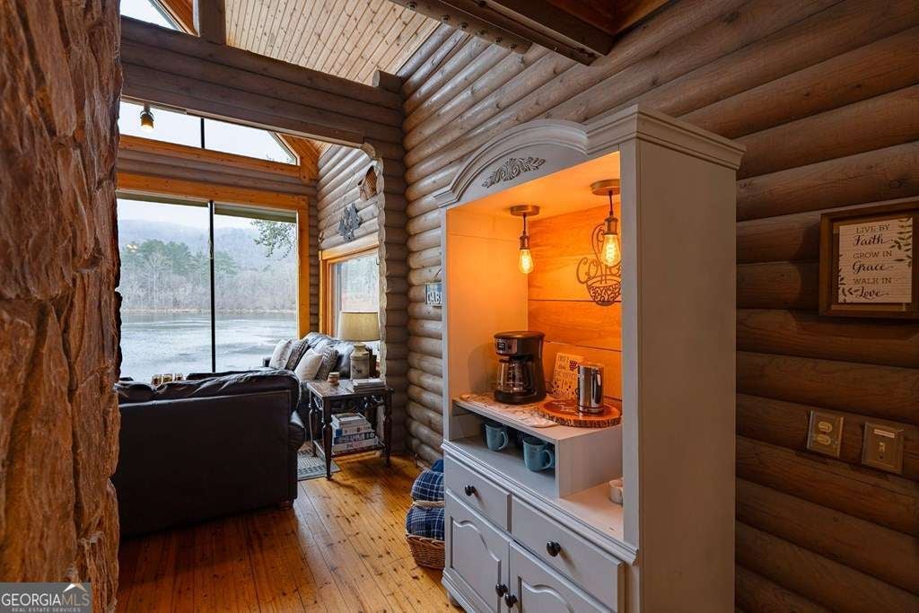 FALLING WATERS LODGE ^ Luxury Without Limits ^ Currently Utilized as a Lakeside Rustic Mountain Wedding Venue and LUXURY RENTAL LODGE, this Exceptional 6-Bed, 6-Bath Mountain Estate with Honeymoon/Bridal Suite- Includes a Fully Updated Innkeeper's Apartment -Also Offering a Rare Zoning Opportunity for Event use and vacation rental in the North Georgia Mountains. Set behind a GATED ENTRANCE on 3.21 Acres of Fenced Grounds, Defined by Privacy, Scale and GLORIOUS MOUNTAIN VIEWS. The Main Lodge Showcases Finnish Arctic Pine Architecture, and a Seamless Flow Between Indoor and Outdoor Enjoyment-Ideal for Hosting Elevated Guest Experiences, Intimate Celebrations, Private Retreats or Weddings up to 50 People. The Property offers a Peaceful Fishing Lake, featuring Catch and Release Fishing from the Bank, adding a TRANQUIL and Highly Desirable Lifestyle Element for Guests. Fully Finished Terrace Level with Game Room, Wet Bar, Sauna and Hot Tub. The Lovely Updated Studio Apartment above the Garage provides Discreet, Private Accommodations for an Innkeeper or Additional Guests. Located just Minutes from ALL ELLIJAY, BLUE RIDGE and our Beautiful Mountains have to Offer~More than a Residence and Event Space~this Property Effortlessly tells a Story the Moment YOU Arrive. Thoughtful Details and Amenities~ Fire Pit for Star Gazing, , Maintenance Free Turf Lawn by the Wedding Site and Party Barn, Potential Wine Storage and Flex Space. This Unique Opportunity Falls Somewhere Between a Fairytale and a Business Plan!
