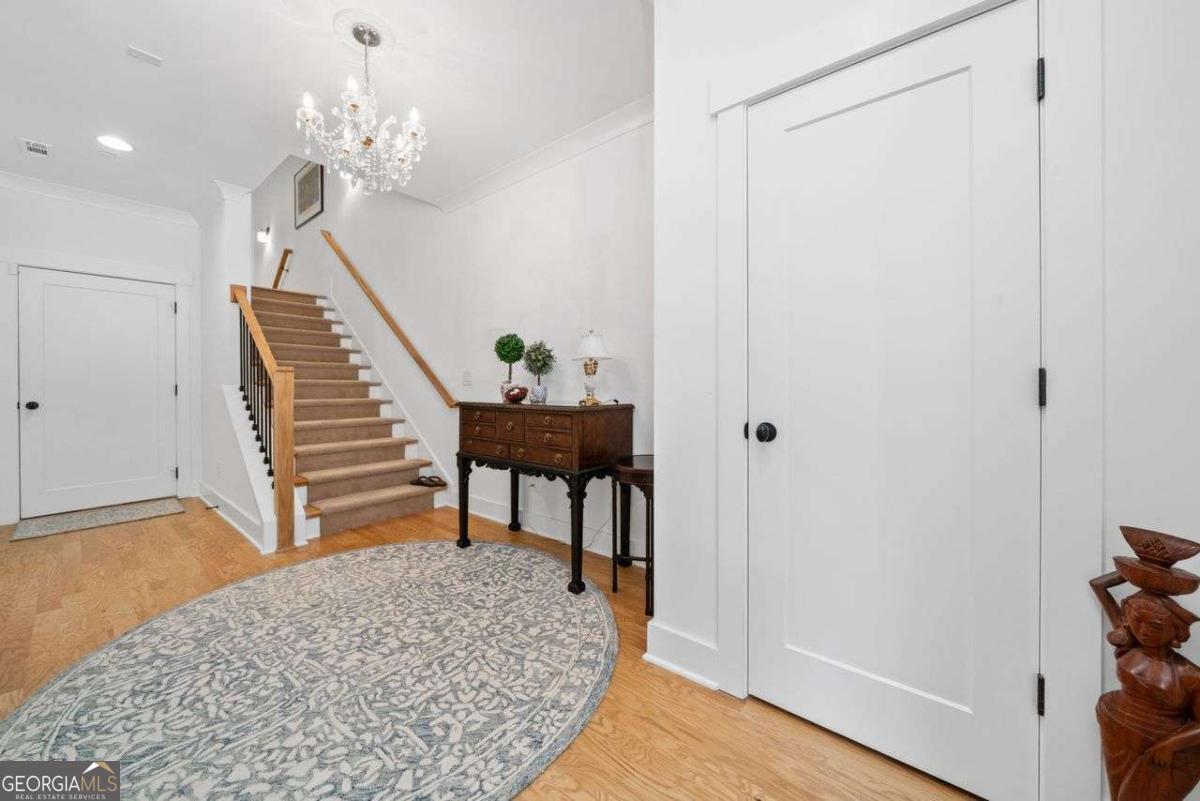 Location is Prime. This exquisite Townhouse is approximately one mile west of the Marietta Square. It is nestled in this desired community in a private cul-de-sac. The exterior has a beautiful brick finish. The back is a complete surprise with two complete living spaces - a covered Deck and Patio. This pristine Townhome is more than move-in ready. It has a beautifully appointed kitchen that any chef would love. The Kitchen is adorned with sleek neutral quartz countertops with stainless appliances. There is a custom Pantry plus a custom Utility closet for appliances. There are 10 foot ceilings with 8-foot solid doors on the main level. There is a lovely great room/living room inclusive of a cozy fireplace to add warmth and ambiance during entertaining or relaxation. There are real hardwoods throughout the entire home with runners added on the stairways. The windows are adorned with custom plantation shutters and custom valances. The primary suite is very spacious and has an ensuite enhanced with an over-the-top customized Closet Space for the owners. There is a versatile fourth bedroom/office/den downstairs. The two-car garage has epoxy flooring with space for utility storage. An HOA takes care of all the landscaping, leaving your weekends free to explore Marietta. It is convenient to Kennesaw Mountain, Marietta Square, grocery shopping, and dining.