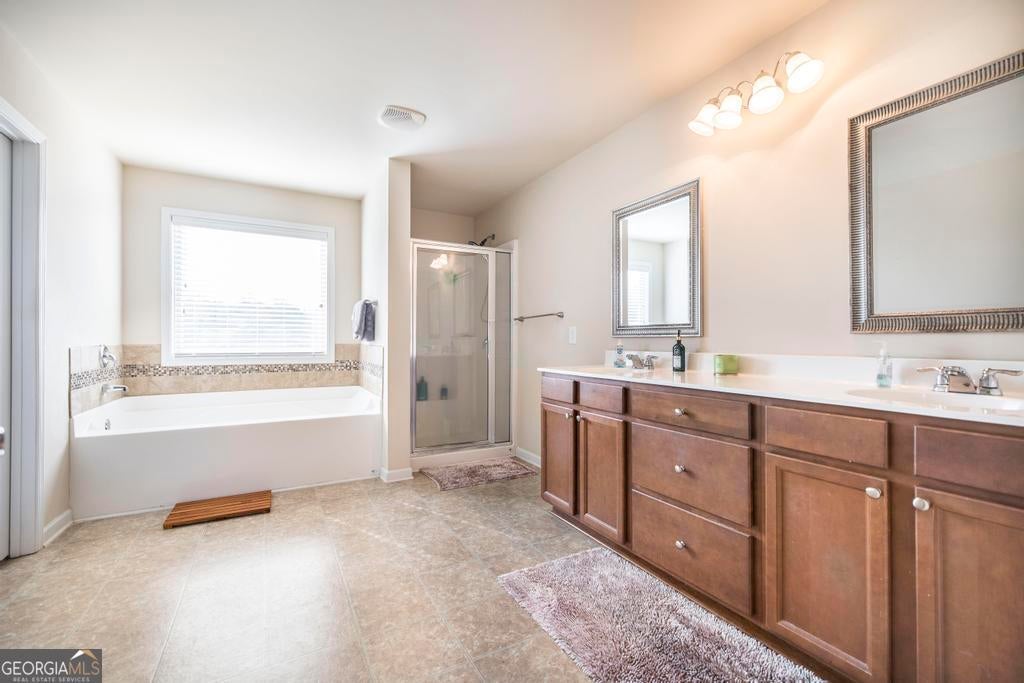 - Interior FeaturesDouble Vanity, High Ceilings, Pulldown Attic Stairs, Separate Shower, Soaking Tub, Split Bedroom Plan, Tray Ceiling(s), Two Story Foyer, Walk-In Closet(s)