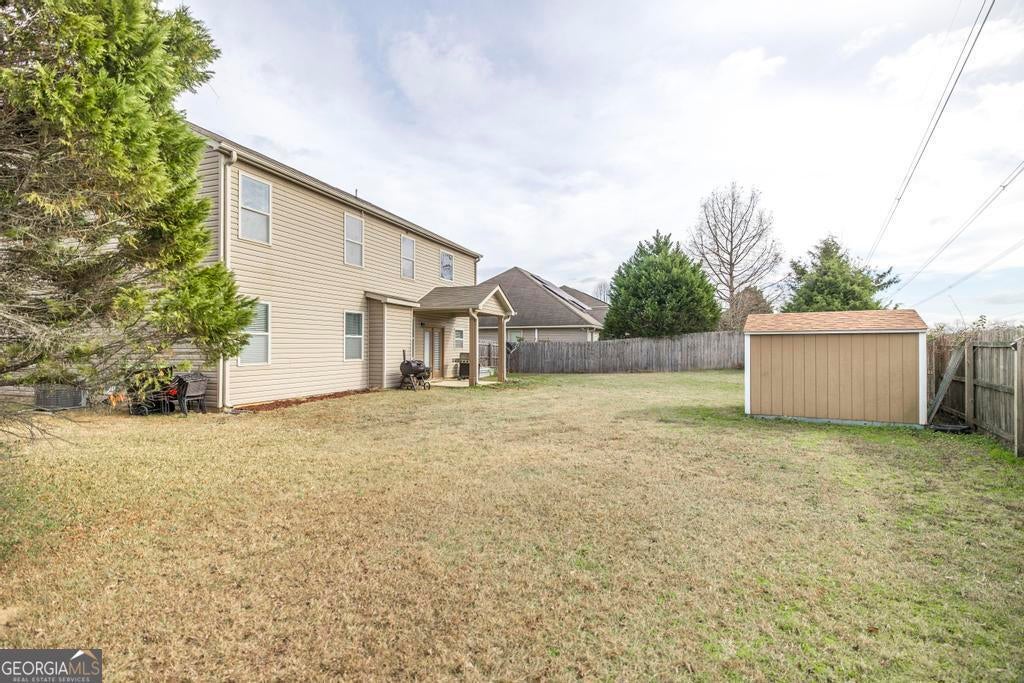 USDA ELIGIBLE! Beautiful 5 Bedroom, 3 Bath Home on Spacious Corner Lot - Nearly 3,000 Sq Ft! Welcome home to this stunning 2-story, 5 bedroom / 3 full bath residence offering almost 3,000 sq ft of comfort, style, and functional living space. From the moment you enter the grand 2-story foyer, you'll appreciate the thoughtful layout, modern finishes, and warm, inviting feel throughout. The main level features a huge family room with a cozy fireplace, perfect for gatherings or quiet evenings in. The open kitchen is a true standout-complete with granite countertops, tile flooring, tiled backsplash, tons of cabinet space, a massive center island, and all appliances included. A separate dining room provides additional space for hosting family dinners or special occasions. Upstairs, retreat to the very large primary suite showcasing tray ceilings, a garden tub, double vanities, separate shower, and a spacious walk-in closet. All secondary bedrooms are generously sized, offering flexibility for guest rooms, home office, fitness room, or playroom needs. Step outside and enjoy the beautifully landscaped yard, complete with a covered back patio, privacy fence, and storage shed-perfect for outdoor living and extra storage. The charming large front porch adds even more curb appeal. Additional features include: 2" faux wood blinds throughout, 2-car garage, Spacious corner lot, Gorgeous, welcoming neighborhood with sidewalks & playground! Located just minutes from I-75, this home offers easy access to shopping, dining, entertainment, and major conveniences-making daily life incredibly convenient. This stunning home truly checks all the boxes-space, comfort, location, and value. Don't miss your chance to make it yours! Call/text me TODAY for your private tour!