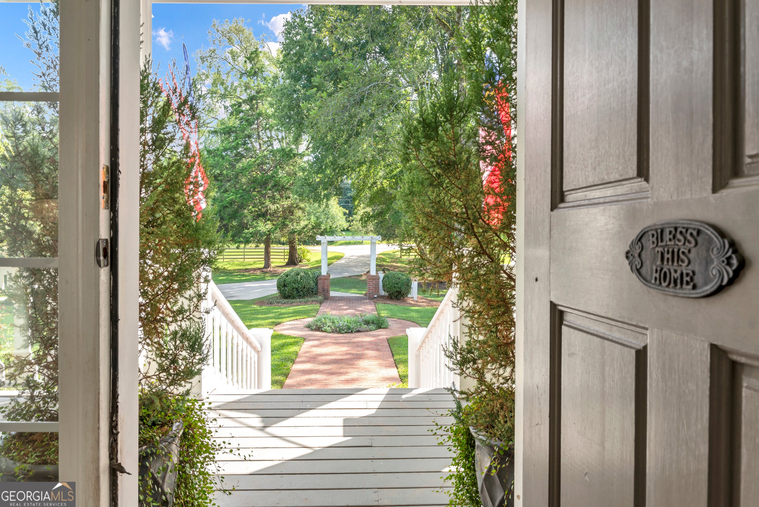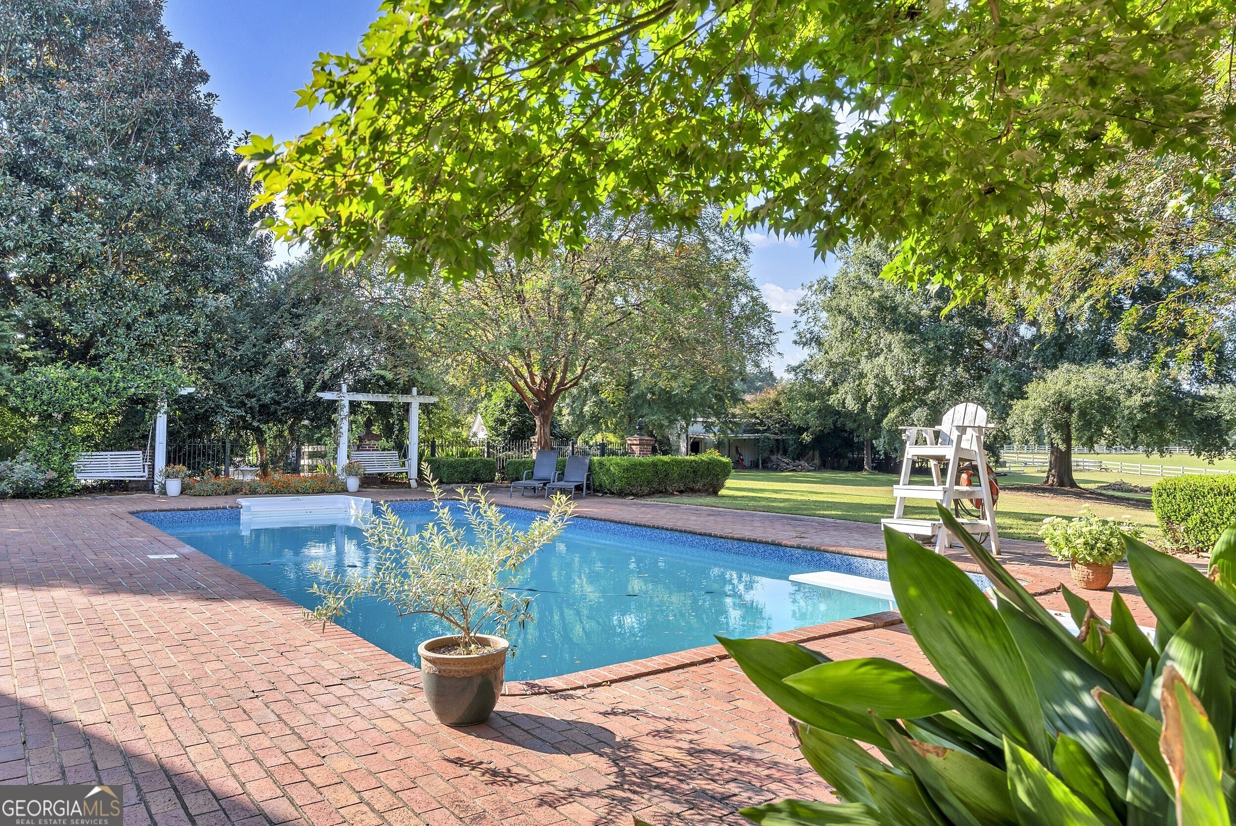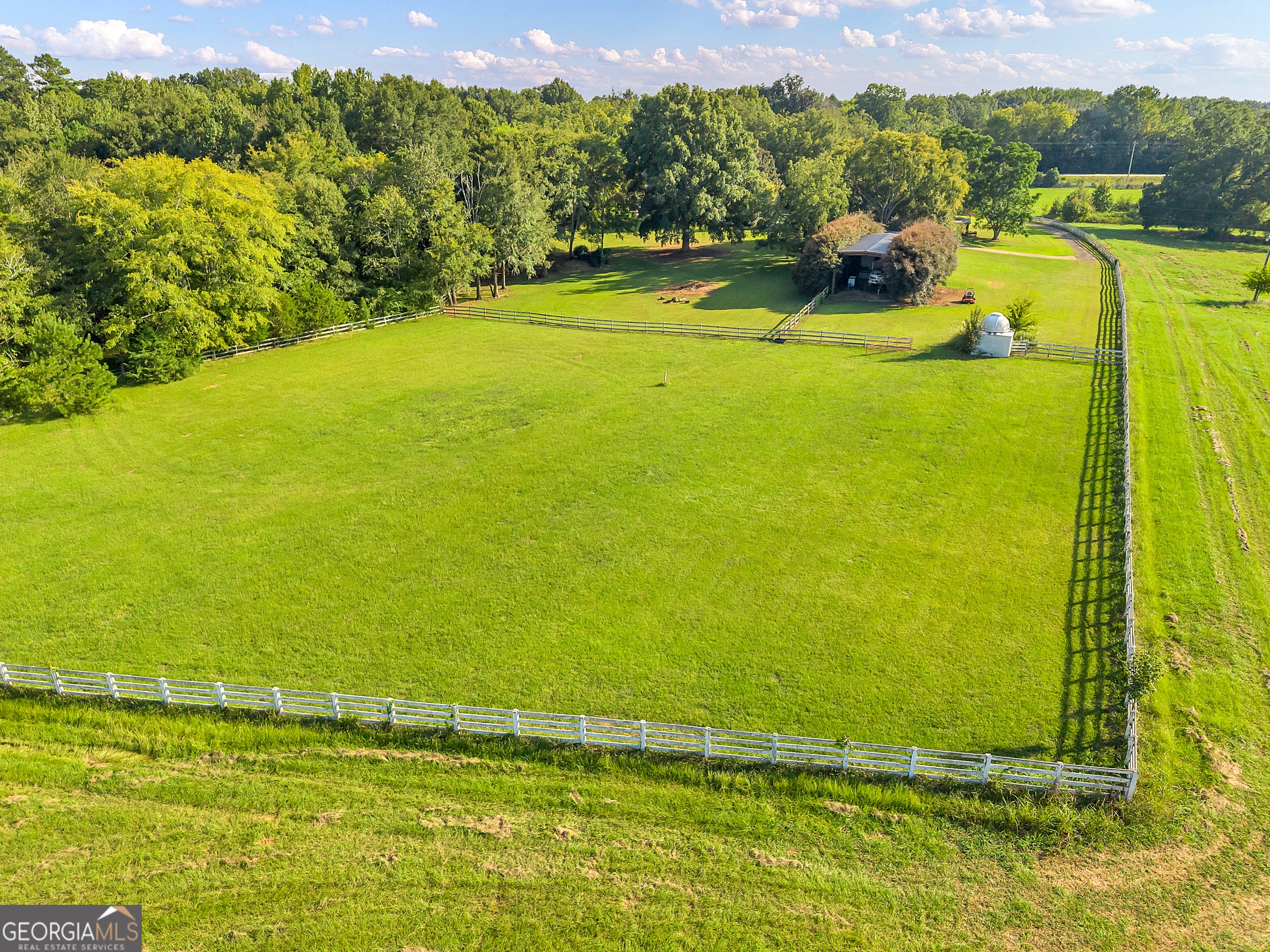 Discover your private farm oasis on over 13 acres of land, perfect for playing & living. This charming but expansive farmhouse is surrounded by gardens, patios, and space to roam, all enclosed by a classic white picket fence. Enjoy the sprawling front porch and multiple outdoor amenities, including a pickleball court, pool, outdoor kitchen & fireplace, and entertaining patio. Additional features include a large workshop, chicken coop & a massive equipment shed that can hold tall RV's & Boats. A True haven for both leisure and modern farm living! This custom-built home boasts slab hardwood floors, expansive floor-to-ceiling windows, vaulted ceilings, and a gourmet kitchen equipped with a Wolfe six-burner range and Sub-Zero refrigerator. The main level features a primary en-suite and a dedicated office space, while upstairs offers two sizable bedrooms. All rooms overlook the picturesque landscape. For gatherings, enjoy a spacious great room with a soaring brick masonry fireplace and wet bar-perfect for game days. A guest bedroom/bonus room upstairs provides additional space. Enjoy a spacious four-car attached garage. An additional 2BR|1Ba cottage onsite conveys with sale. Currently rented. This oasis is Located just 10 minutes from Lake Oconee amenities. This incredible property combines luxury, privacy, and recreation in one perfect package.
