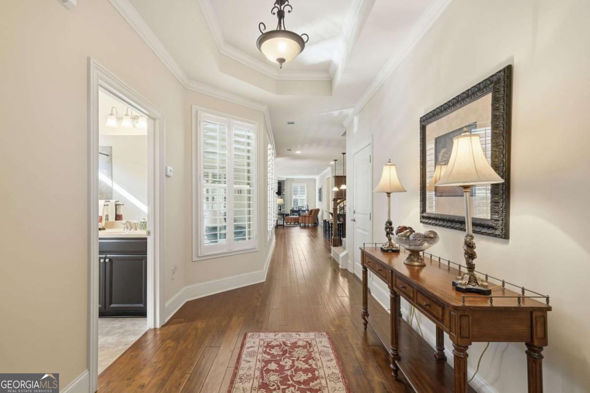Located in one of WOODSTOCKS most desirable GATED 55+ ACTIVE ADULT COMMUNITIES, this IMMACULATELY MAINTAINED 3 BEDROOM, 3 BATH HOME offers effortless living with standout style. The OPEN-CONCEPT LAYOUT features HARDWOOD FLOORS and a CHEF-INSPIRED KITCHEN that flows seamlessly into the main living area, perfect for both everyday comfort and entertaining. The MAIN-LEVEL OWNER'S SUITE includes a SPACIOUS ZERO-ENTRY SHOWER, while the PRIVATE UPSTAIRS GUEST SUITE WITH FULL BATH provides flexibility for visitors or hobbies. Enjoy quiet mornings or evening gatherings on the COVERED STONE PATIO, along with thoughtful upgrades such as PLANTATION SHUTTERS, UPGRADED INSULATION, and a FULL SPRINKLER SYSTEM. MOVE-IN READY, LOW-MAINTENANCE, AND DESIGNED FOR THE ACTIVE ADULT LIFESTYLE, this home truly sets itself apart. All less than 10 minutes from Downtown Woodstock!!!