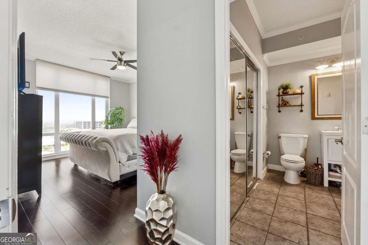 Live Above It All at the Oaks of Buckhead! - Experience elevated city living in this stunning 2-bedroom condo perched high above Atlanta's skyline. Unit 980 boasts dramatic floor-to-ceiling windows that frame sweeping views of Buckhead and Atlanta, flooding the open-concept living space with natural light. Rich hardwood floors, an upgraded kitchen with Stainless Appliances and large bar great for entertaining. Private entry foyer, Crown Moulding and Custom Window Treatments, and amazing space throughout create a seamless blend of luxury and functionality. A deeded parking space in the covered garage and a private storage unit add convenience and value. Nestled within the prestigious, gated community of The Oaks at Buckhead, residents enjoy 24-hour concierge service, complimentary guest parking. Hosting guests? Take advantage of the private guest suite accommodations on-site. The amenities are second to none - Saltwater pool, hot tub, and sauna - State-of-the-art fitness center - Club room with bar and catering kitchen - Theatre room, conference room, and business center - Four roof top sun terraces, gas grilling patio, and lush private courtyard - On-site car wash station and bike racks. Located just steps from Lenox Mall, Phipps Plaza, Buckhead MARTA station providing quick access to downtown and airport, and Atlanta's finest dining, with quick access to GA-400, I-85, and Hartsfield-Jackson Airport **Unit 980 isn't just a home - it's a lifestyle in the sky.** Schedule your private tour today and discover why The Oaks at Buckhead remains one of Atlanta's most coveted addresses.