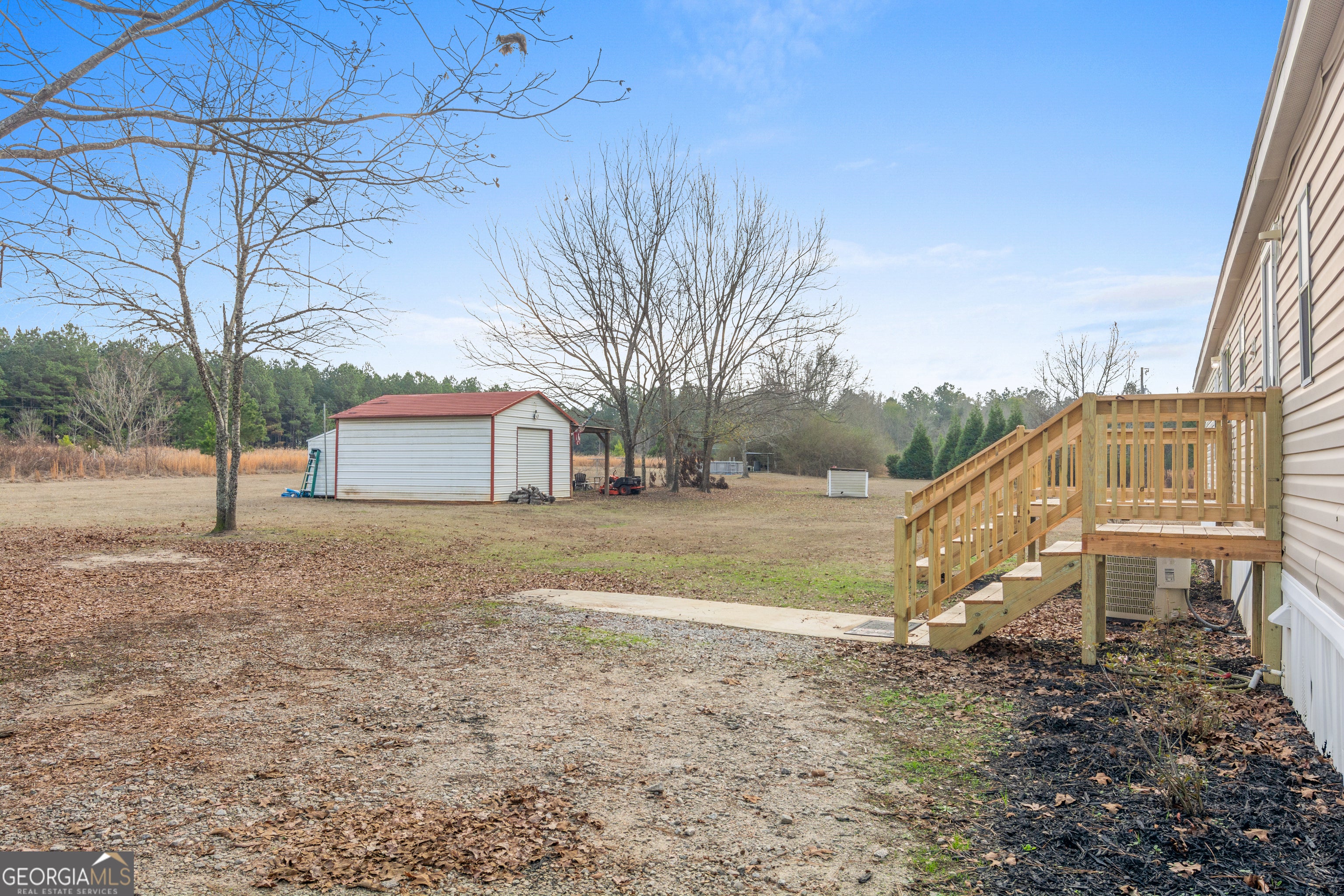 Private 5-Acre Retreat | 5 Bedrooms + Den | Metal Building. Well-maintained home set on 5 private acres in a peaceful rural setting! Offering 2,128 sq ft, this spacious home features 5 bedrooms, 3 full bathrooms, plus a bonus den with a cozy fireplace-perfect for relaxing or entertaining. Enjoy the open feel of vaulted ceilings and a large kitchen with abundant counter and cabinet space for all your cooking and storage needs. The split-bedroom floorplan provides added privacy with the primary suite separated from the remaining bedrooms. The oversized primary bedroom includes an ensuite bath with dual vanities, a garden tub, and a separate shower. Two additional full bathrooms serve the remaining bedrooms and guests with ease. Step outside to enjoy the brand-new front and back decks, ideal for taking in the quiet surroundings. Plus, the property includes an 18x20 pre-fab metal building with attached 12x20 lean-to. The building is on a concrete slab with electrical already connected-great for a workshop, storage, or hobbies. A rare combination of space, privacy, and functionality-schedule your showing today!