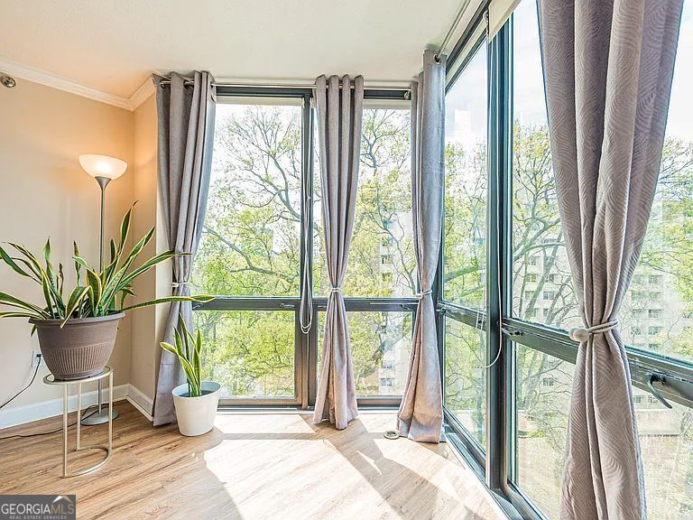 9th floor 1br/1ba unit with a view of the pool! Easily accessible to everything Buckhead has to offer. Close to shopping, wonderful restaurants, 400/I-75/I-85 and Downtown ATL. Charming wooded neighborhood great for walking/jogging. Excellent pool/grilling stations. Great onsite gym to work those calories and that daily stress. The unit is updated with stainless steel appliances, extra large stone floor walk-in shower, and cellular shades. Gated, assigned parking and receptionist on site. Move-in ready! Come check us out!