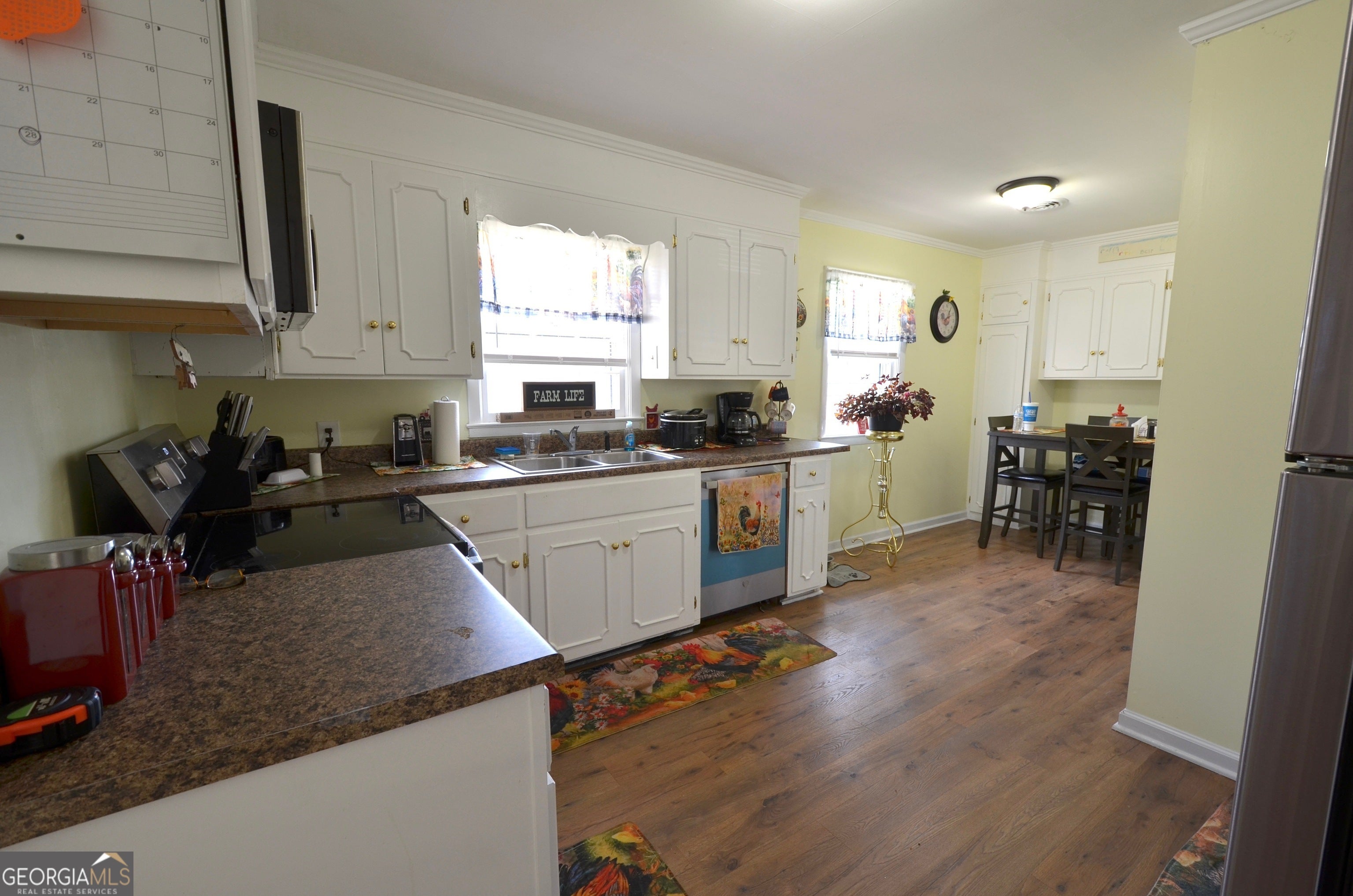 - AppliancesDishwasher, Dryer, Electric Water Heater, Microwave, Refrigerator, Oven/Range (Combo), Stainless Steel Appliance(s)