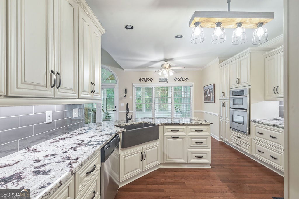 - AppliancesDishwasher, Double Oven, Electric Water Heater, Microwave, Oven/Range (Combo), Stainless Steel Appliance(s)