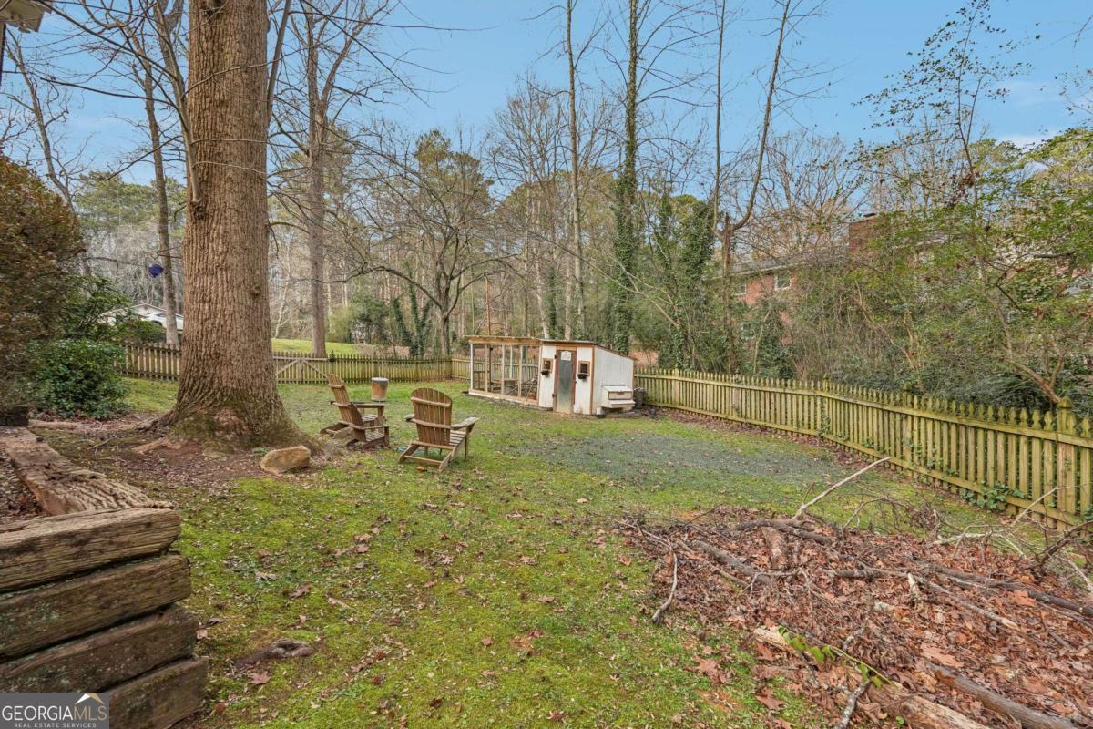 Welcome home to 2121 Skytop Drive, nestled in the prestigious Smoke Rise community, where mature landscaping, winding nature trails, and multiple community pool options create a true retreat-like lifestyle. Just minutes away, the esteemed Smoke Rise Country Club offers golf, dining, tennis, and social amenities for those seeking an elevated living experience. As you arrive, the charm is undeniable. The coveted four-sided brick ranch with cedar shake accents sits gracefully beneath a stunning oak canopy, complete with a nostalgic rope swing and professionally maintained mature landscaping that frames the property beautifully. Step inside to a welcoming terrazzo-tiled foyer, flanked by gleaming original hardwood floors that reflect the abundant natural light pouring in through oversized windows. To the right, the kitchen is rich with character, featuring an exposed brick wall, ample counter space, generous cabinetry, and a copper-lined back splash that adds warmth and texture. The living room invites cozy evenings by the fireplace, while double doors lead to a tiled, screened-in patio, ideal for breezy afternoons and quiet mornings. From there, step onto the deck made for entertaining and an expansive fenced backyard-room to play, garden, or simply wander. A spacious great room provides the ideal setting for gatherings both large and intimate. Each bedroom boasts original hardwood floors and solid wood doors, offering enhanced privacy and sound insulation throughout. Downstairs, the versatile basement unlocks endless possibilities. Previously used as a recording studio, the space includes a large living area, a kitchenette, a bedroom and a bathroom already plumbed-making it ideal for a potential in-law suite, creative studio, or recreation space. Additional unfinished storage, a dedicated laundry room, and a convenient laundry chute from the main floor make everyday living effortless. The extended two-car garage comfortably accommodates vehicles and a workshop area. Recent upgrades-including a roof with leaf filter system and a water heater less than one year old-provide peace of mind for years to come. This is more than a home-it's a lifestyle rooted in charm, comfort, and community. 2121 Skytop Drive is a rare opportunity to own a timeless Smoke Rise classic.
