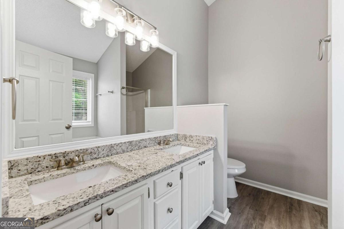 Welcome to this charming split-level home nestled in the heart of Woodstock. With 4 bedrooms and 3 full bathrooms, this property offers the perfect blend of comfort and functionality for modern living. Step inside to find a versatile lower level featuring a cozy bedroom, full bathroom, and convenient laundry room - ideal for guests or a private home office setup. Ascend to the upper level where an open concept design awaits, seamlessly connecting the kitchen, living room, and dining areas. The kitchen features sleek stainless steel appliances and a gas range for culinary enthusiasts. Enjoy casual meals in the informal dining area or host elegant dinner parties in the formal dining room, both offering picturesque views of the inviting living room. Retreat to the generously sized primary bedroom, complete with an ensuite bathroom that includes all the necessities. Indulge in the double vanity with granite countertops, refreshing walk-in shower, and a separate soaking tub for ultimate relaxation. Outside, a fully fenced backyard provides a private oasis for outdoor enjoyment and peace of mind for pet owners. Whether you're entertaining guests or seeking a quiet moment of solitude, this home offers the perfect setting for all of life's moments. Don't miss this opportunity to make 203 Chesapeake Ln your new home sweet home in the desirable Woodstock area!