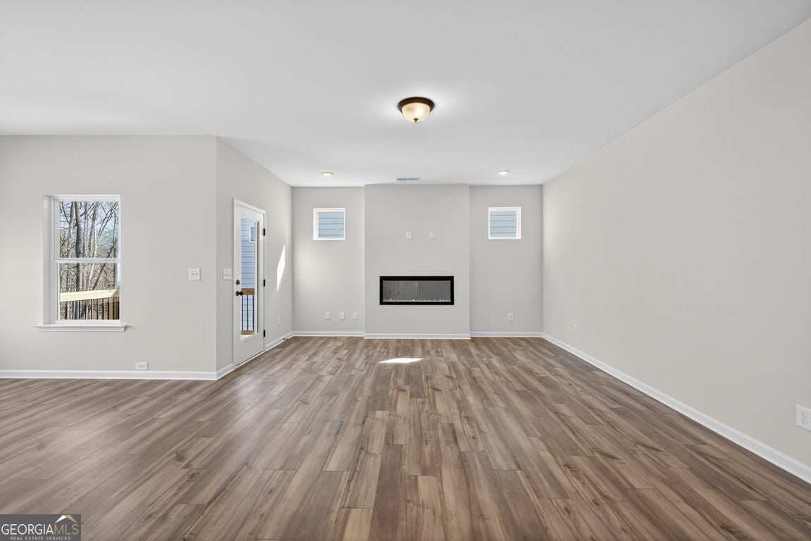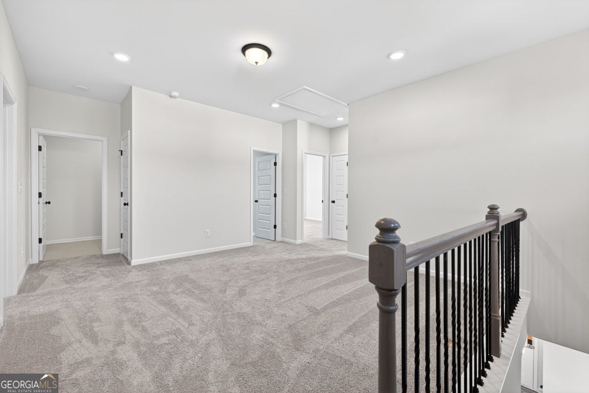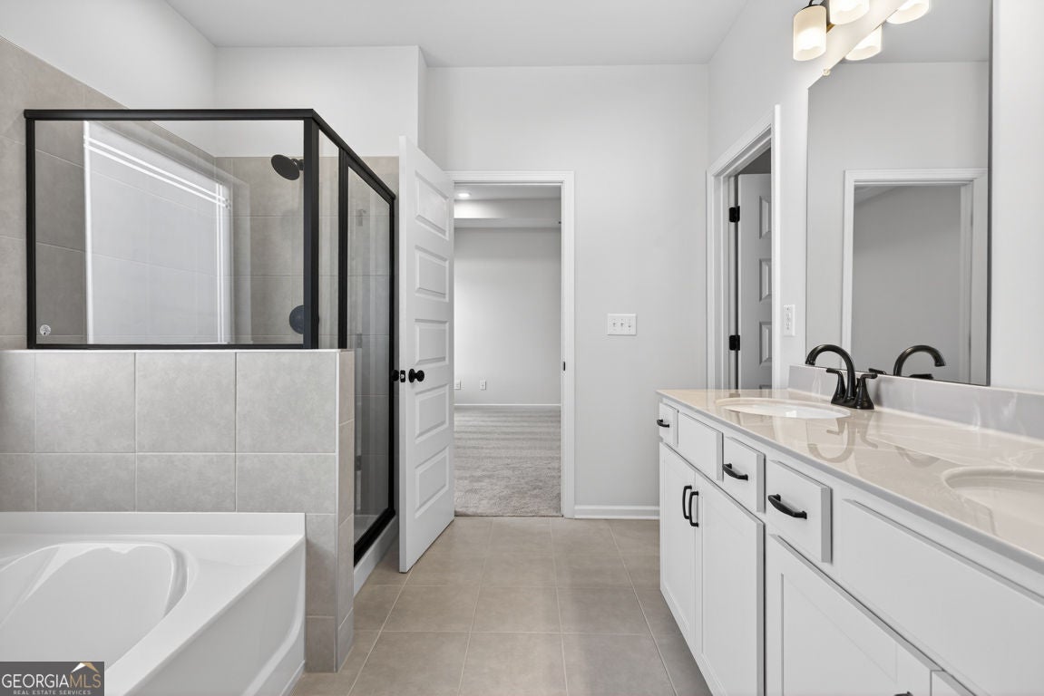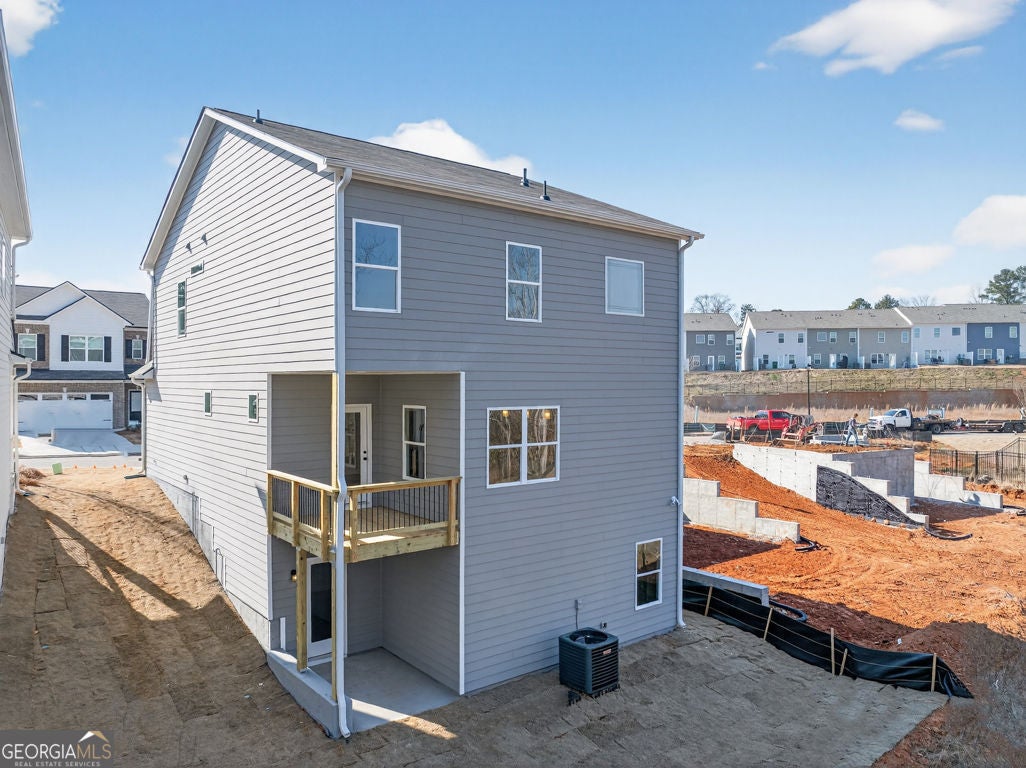 Move-In Ready! The Buford II plan by Smith Douglas Homes in the highly anticipated Sanders Park community in Austell, GA-where comfort, style, and convenience meet. Sanders Park is a swim community! This stunning home sits on an unfinished basement, offering endless possibilities for future expansion or storage. Enjoy 9-ft ceilings on both floors that enhance the spacious feel throughout. The central family room features a linear fireplace for cozy gatherings and opens seamlessly to the covered back patio and deck, perfect for relaxing outdoors. The chef-inspired kitchen includes quartz countertops, a large peninsula, and a bright breakfast nook, ideal for everyday meals or entertaining. The main level showcases luxury vinyl plank flooring, black accent finishes, and elegant iron railings for a modern touch. Upstairs, a versatile loft offers flexible space for a home office, playroom, or fitness area. The private primary suite impresses with a tray ceiling, spa-style bath featuring a tiled shower and garden tub, and a large walk-in closet. Two additional bedrooms, a full bath, and a convenient upstairs laundry room complete the second floor. Enjoy community living with a planned neighborhood pool, ideal for summer fun and relaxation. Located just minutes from downtown Austell, I-20, and shopping, dining, and recreation, Sanders Park offers the perfect blend of comfort and convenience. Upgrades include: 3/4 glass front door, black hardware finishes, iron railings upstairs and down, upgraded tile in baths and laundry, and thoughtfully placed windows that fill the home with natural light even in the unfinished basement! Experience the lifestyle you've been dreaming of at Sanders Park by Smith Douglas Homes. Special incentives with use of prefered lender. Photos of home.