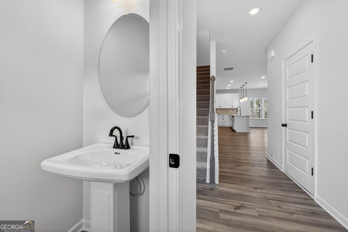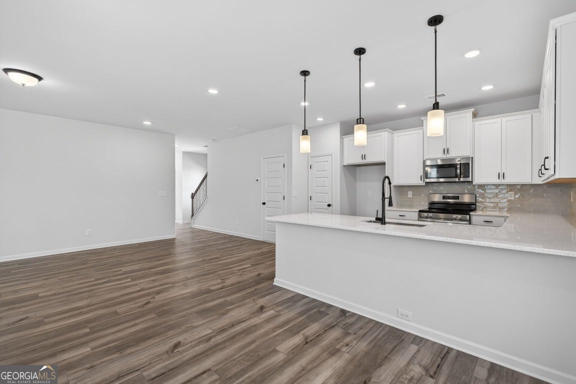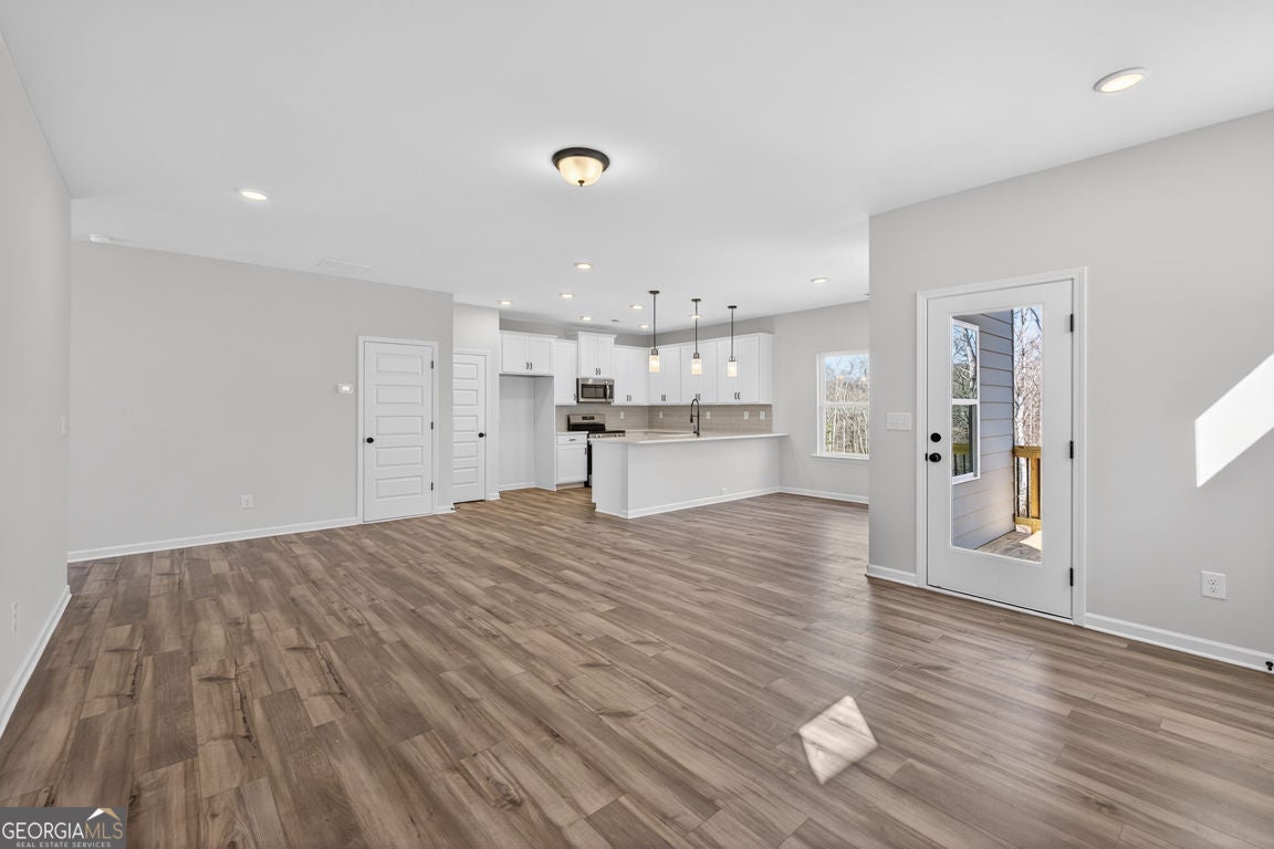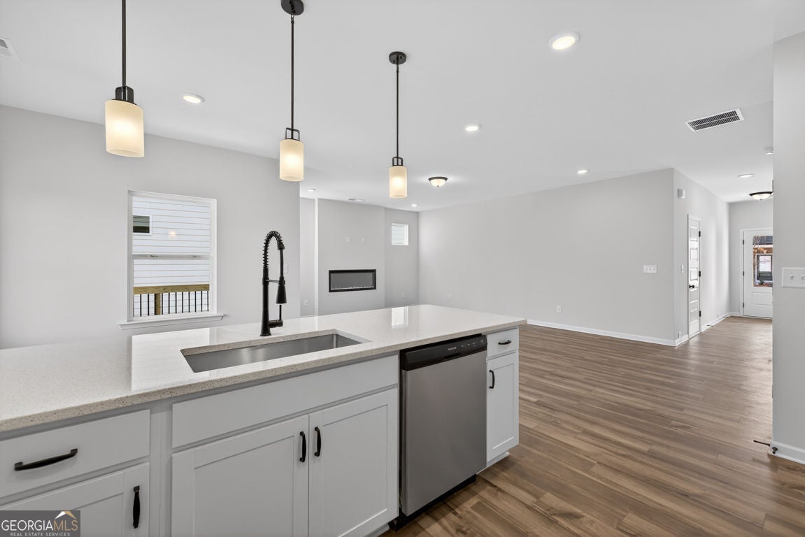 Move-In Ready! The Buford II plan by Smith Douglas Homes in the highly anticipated Sanders Park community in Austell, GA-where comfort, style, and convenience meet. Sanders Park is a swim community! This stunning home sits on an unfinished basement, offering endless possibilities for future expansion or storage. Enjoy 9-ft ceilings on both floors that enhance the spacious feel throughout. The central family room features a linear fireplace for cozy gatherings and opens seamlessly to the covered back patio and deck, perfect for relaxing outdoors. The chef-inspired kitchen includes quartz countertops, a large peninsula, and a bright breakfast nook, ideal for everyday meals or entertaining. The main level showcases luxury vinyl plank flooring, black accent finishes, and elegant iron railings for a modern touch. Upstairs, a versatile loft offers flexible space for a home office, playroom, or fitness area. The private primary suite impresses with a tray ceiling, spa-style bath featuring a tiled shower and garden tub, and a large walk-in closet. Two additional bedrooms, a full bath, and a convenient upstairs laundry room complete the second floor. Enjoy community living with a planned neighborhood pool, ideal for summer fun and relaxation. Located just minutes from downtown Austell, I-20, and shopping, dining, and recreation, Sanders Park offers the perfect blend of comfort and convenience. Upgrades include: 3/4 glass front door, black hardware finishes, iron railings upstairs and down, upgraded tile in baths and laundry, and thoughtfully placed windows that fill the home with natural light even in the unfinished basement! Experience the lifestyle you've been dreaming of at Sanders Park by Smith Douglas Homes. Special incentives with use of prefered lender. Photos of home.