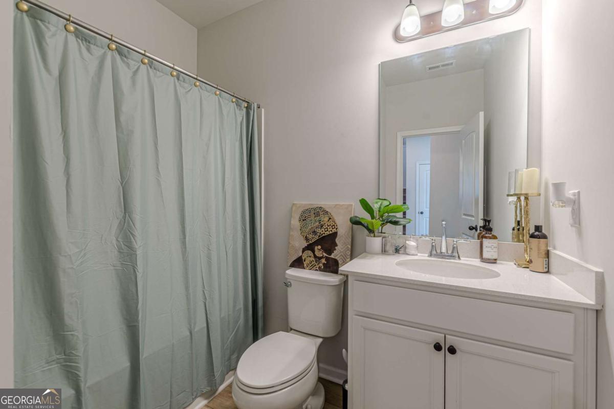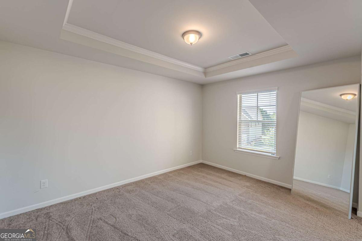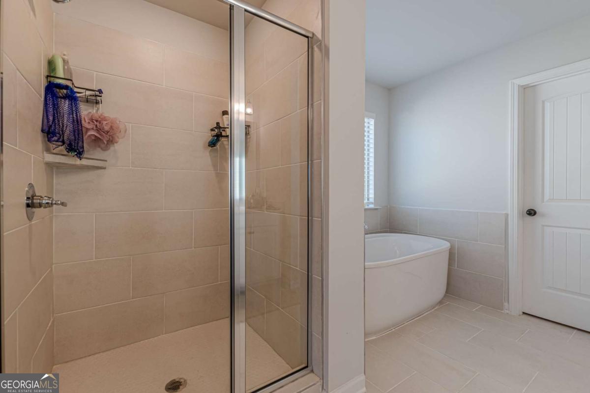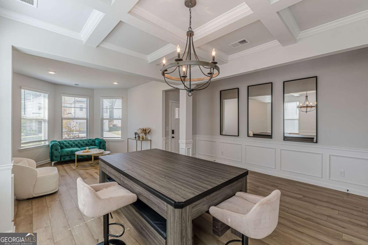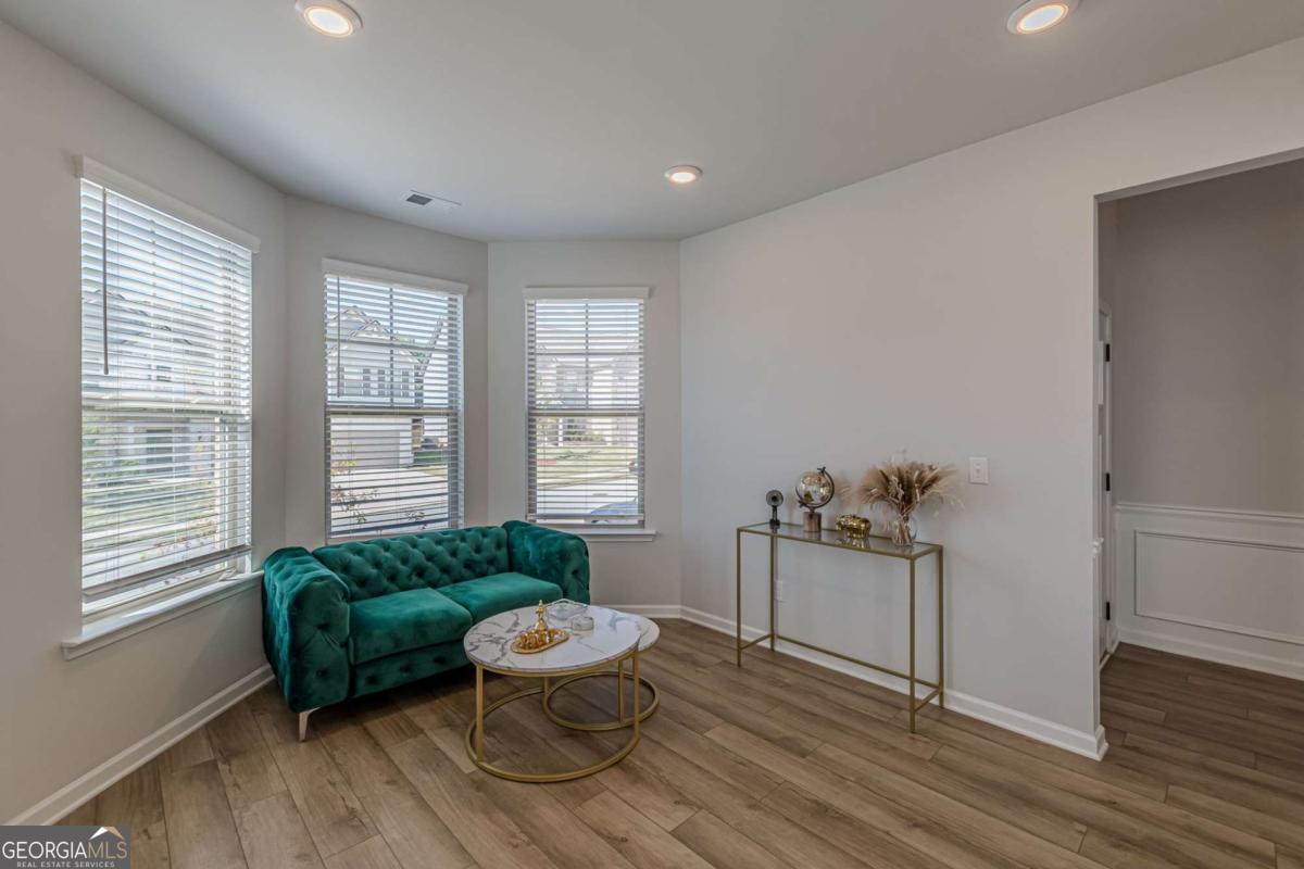 Located in the gated community of Camp Creek Village, this spacious 5-bedroom, 4-bath home offers a functional layout with modern finishes and convenient access to I-285, Camp Creek Marketplace, Hartsfield-Jackson Atlanta International Airport, and Downtown Atlanta. The home features an oversized owner's suite with vaulted ceilings, two walk-in closets, a sitting area, loft, and spa-style bath with tiled walk-in shower, garden tub, and dual vanities. The gourmet kitchen includes quartz countertops, an oversized island, stainless steel appliances, walk-in pantry, and ample cabinetry, opening to the main living areas. The open-concept main level offers a two-story foyer, formal living and dining rooms, coffered ceilings, and LVP flooring throughout main living spaces. A main-level bedroom and full bath provide flexible use. Additional highlights include a three-car garage and location within the Westlake High School attendance area.