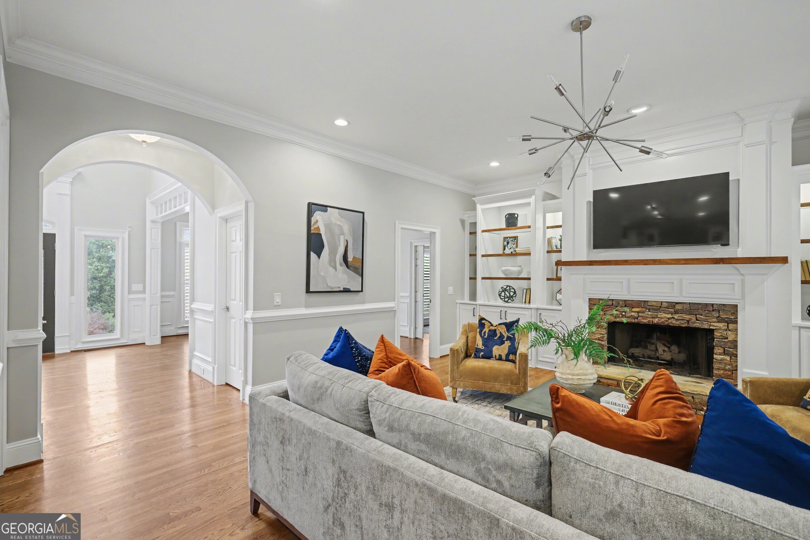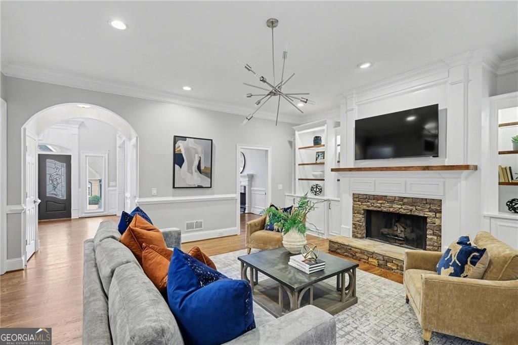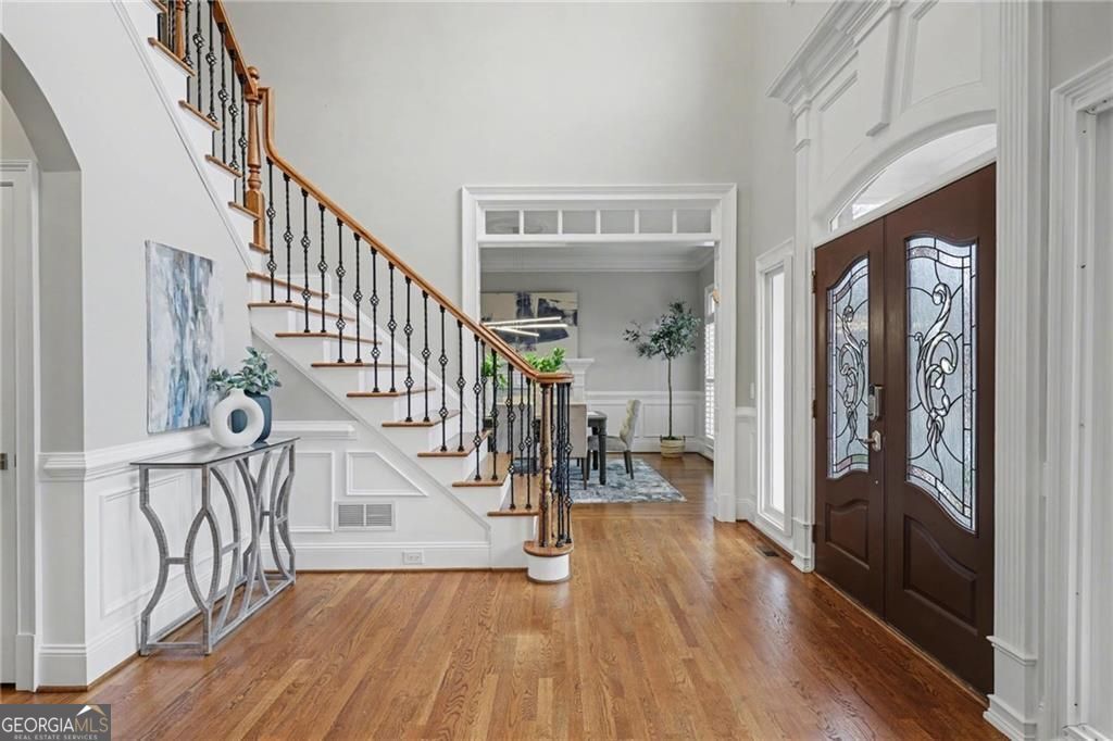 Set on a quiet cul-de-sac within a gated Sandy Springs enclave, 225 Farmbrooke Court blends timeless architecture with thoughtful, modern updates. Generously sized rooms throughout are designed for both everyday living and entertaining. The updated kitchen anchors the main level with custom cabinetry, high-end appliances, two dishwashers, an oversized island, and a breakfast room with coffee bar that flows seamlessly into the keeping room. All bathrooms were fully renovated in 2025, complementing the newly refinished hardwood floors throughout. The main level features a two-story foyer, fireside dining, music, and family rooms, a private office or guest suite with full bath, mudroom and laundry, and a kitchen that opens to two covered porches with walk-out access to the saltwater pool and hot tub, framed by mature landscaping. Upstairs, the home offers four large secondary bedrooms with hardwood floors and a primary suite with sitting area, spa-style bath, and generous closet space. The finished terrace level expands the home's livability with a bar and recreation room, spaces well suited for a gym and wine cellar, and two additional bedrooms with a full bath, ideal for extended stays. Additional features include five fireplaces, four-sided brick construction, a 3-car garage with EV charger and a flexible layout, conveniently located near shopping, dining, the Central Perimeter business district, I-285 and GA-400, and a wide range of nearby schools and amenities. Homes offering this level of space, updates and a gated setting are increasingly rare in Sandy Springs, making this a truly move-in-ready opportunity.