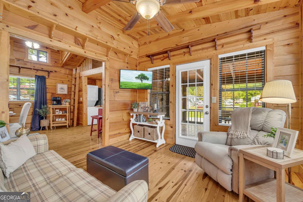 Charming Park Model Cabin with Mountain Views in Falls View Mountain Village! Welcome to this inviting 2-bedroom, 1-bath park model cabin perfectly positioned to capture beautiful mountain views in the highly desirable Falls View Mountain Village community. Enjoy peaceful living with a spacious screened-in porch overlooking the community water feature, ideal for morning coffee, evening relaxation, or year-round outdoor enjoyment. Step inside and enjoy a BRAND-NEW HVAC system just installed, ensuring comfort in every season. A ONE-YEAR HOME WARRANTY with an acceptable offer provides added peace of mind. Inside, the cabin offers a cozy living area and a versatile loft, great for additional sleeping space, storage, or a play area. The community provides exceptional amenities including indoor and outdoor swimming pools, a fitness center, playground, picnic areas, pavilions, grills, and a fenced dog park. Whether you're seeking a weekend getaway, full-time residence, or the perfect downsizing option, this adorable mountain retreat checks all the boxes. Conveniently located near Black Rock Mountain State Park, Becky Branch Falls, Julep Farms, 12 Spies Vineyards, and the renowned Dillard House. Schedule your tour today and be sure to ask about available financing options!