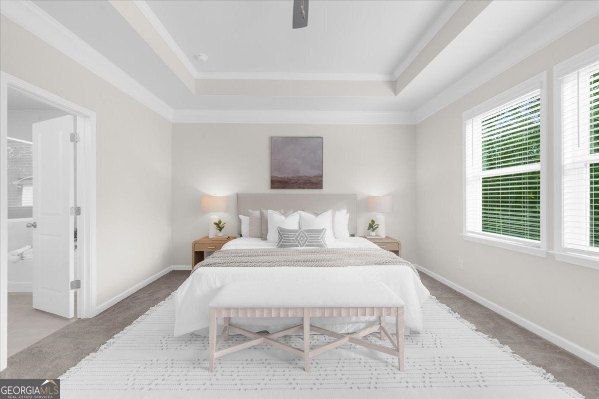 - Interior FeaturesDouble Vanity, High Ceilings, Split Bedroom Plan, Tray Ceiling(s), Walk-In Closet(s), Roommate Plan