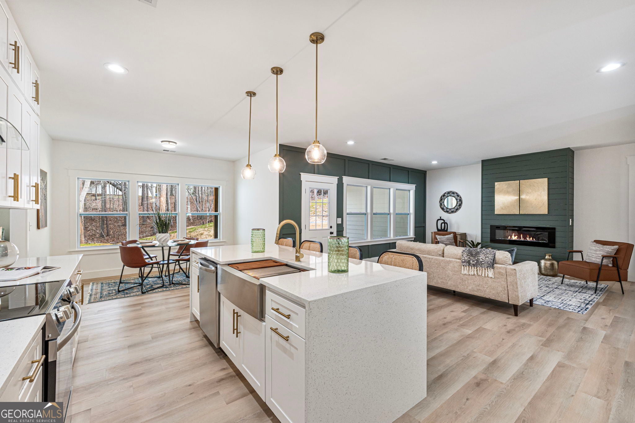 Welcome to 177 Summit Ridge Dr SE - Where Elevated Design Meets Refined Living. Now professionally staged - shows beautifully! From the moment you arrive, this exceptional new construction makes a statement. The charming modern farmhouse exterior, pristine landscaping, and spacious two-car garage create a polished first impression that immediately sets the tone for what's inside. Step through the front door into a light-filled, open-concept living space designed for both comfort and sophistication. Clean architectural lines, curated finishes, and a seamless layout create an effortless flow throughout the main living areas. The living room is anchored by an elegant electric fireplace and a striking accent wall, adding warmth and character while maintaining a modern aesthetic. At the center of the home, the designer kitchen impresses with a dramatic waterfall island, sleek cabinetry, and a layout that connects beautifully to the dining and living areas - ideal for hosting gatherings or enjoying everyday moments in style. The bedrooms are thoughtfully positioned for privacy and comfort, while the bathrooms showcase contemporary finishes that feel refined yet inviting. The primary suite offers a peaceful retreat, complete with a spa-inspired bath that brings a sense of calm and luxury to daily living. Step outside to the covered rear porch - the perfect extension of your living space. Whether it's morning coffee, weekend entertaining, or quiet evenings under the open sky, the private backyard offers flexibility and serenity. LOCATED DIRECTLY ACROSS FROM A GOLF CLUB - UNWIND WITH BREATHTAKING, EXCLUSIVE GOLF COURSE VIEWS. Enjoy the rare combination of scenic surroundings and everyday convenience, just minutes from shopping, dining, and everything Cartersville has to offer. This is more than a home - it's a lifestyle upgrade. Schedule your private tour and experience 177 Summit Ridge Dr SE for yourself.*Grass pictures have been modified to enhance listing features. Original photos are available by the end of the exterior details*