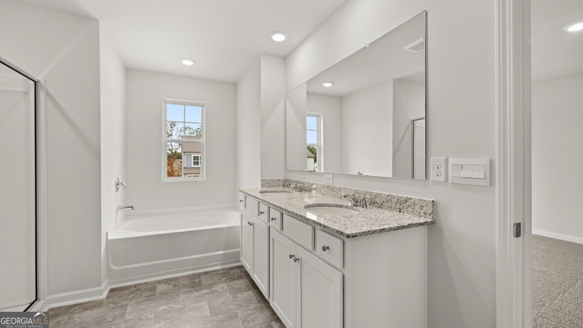 - Interior FeaturesDouble Vanity, High Ceilings, Roommate Plan, Separate Shower, Soaking Tub, Split Bedroom Plan, Walk-In Closet(s)