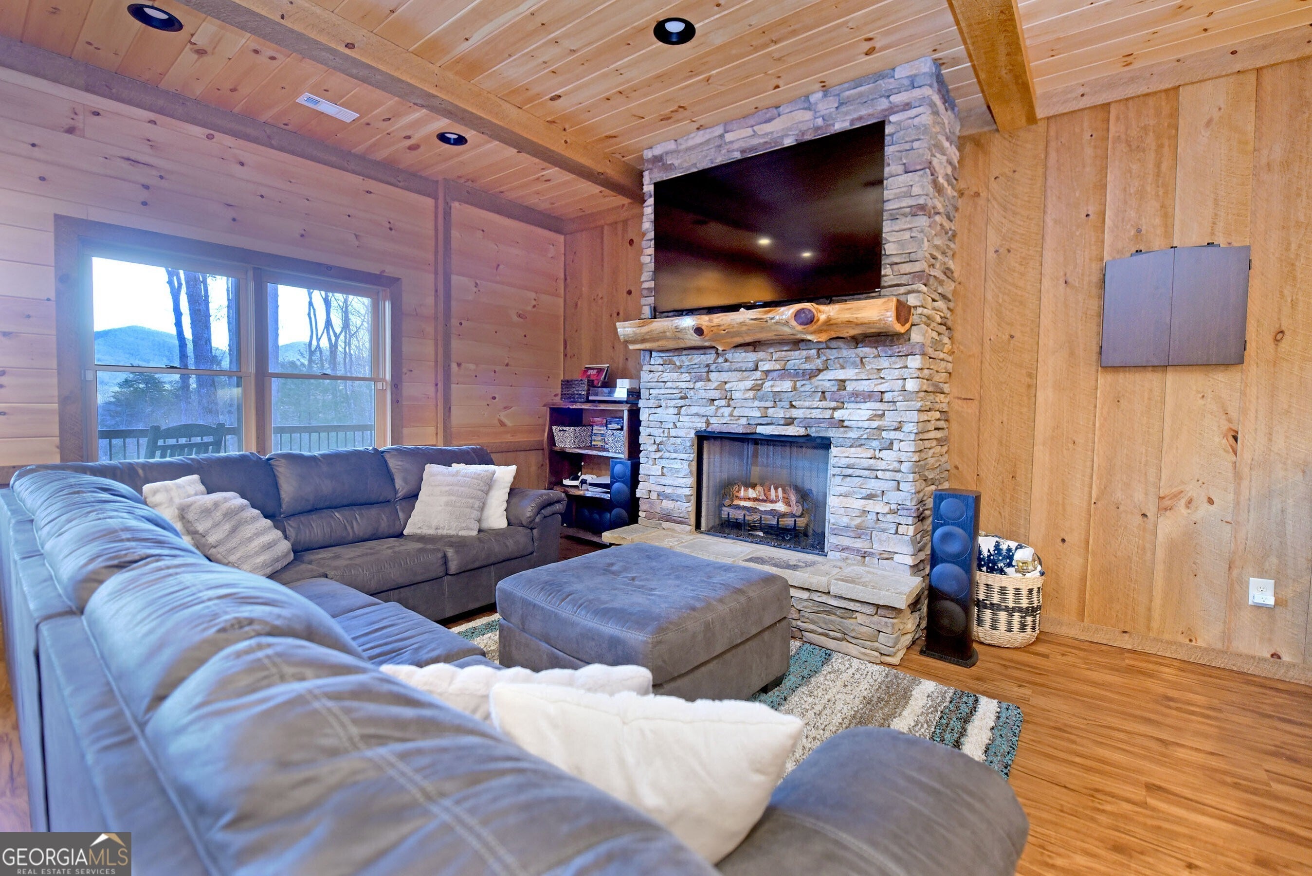 Nestled within the exclusive, gated community of Noontootla Highlands in the Aska Adventure Area, this remarkable mountain retreat seamlessly blends refined luxury with timeless rustic charm. Situated on 8.01+/- private acres, this three-bedroom plus loft, three and one-half bath cabin offers peaceful year-round mountain views from nearly every vantage point. Crafted with hand-hewn log siding, the home welcomes you with rich wood floors, upscale custom cabinetry and upgraded granite countertops throughout. The open-concept main level is anchored by a dramatic stacked-stone ventless gas log fireplace, creating a warm and inviting atmosphere. The gourmet kitchen features upgraded granite surfaces and sleek black slate appliances, perfect for both everyday living and entertaining. The main-level primary suite offers a serene retreat with a private en suite bath, while a convenient half bath with laundry completes the level. Outdoor living shines with wrap-around porches and a screened party porch featuring a wood-burning stacked-stone fireplace, ideal for cozy evenings overlooking the mountains. The finished terrace level is designed for entertainment and relaxation, showcasing a game area, great room with stacked stone fireplace, sizeable wet bar and a terrace-level hot tub, all framed by even more great mountain views. This exceptional property provides ample room to build a guest house or garage, offering the flexibility to tailor the estate to your vision. Surrounded by towering hardwoods and tranquil mountain scenery, it is ideally suited as a private mountain escape, luxurious vacation retreat or desirable investment, where cozy evenings, refined comfort, and the natural beauty of the mountains come together effortlessly.