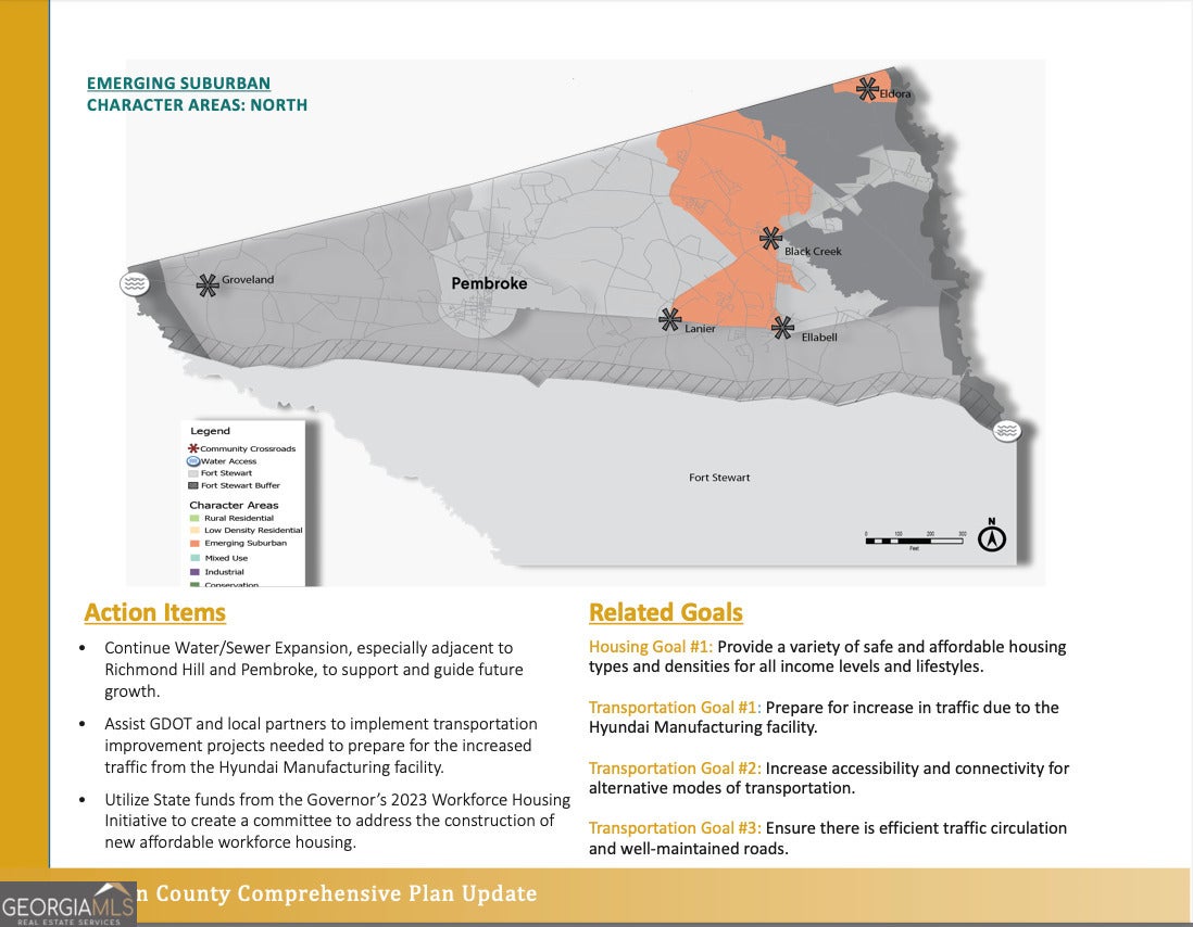 Check out this prime piece of property located only minutes to the new $7.59 billion dollar investment that is the Hyundai Motors Group Meta Plant! This sale includes 2 parcels: 029 052 01 and 029 052 02, giving a total acreage of 30.71 acres in one of the most sought after markets in the state! This area has been classified as "Emerging Suburban" by the Bryan County Master Comprehensive Plan which outlines areas of growth through 2045. These tracts back up to I-16 and have roughly 500 foot of paved road frontage via Olive Branch Road. There are no deed restrictions on the land. There are two homes on the property, one being a smaller, older home and the other being roughly 2200 square foot. These pieces would be a great candidate for a residential or commercial development especially with Hyundais growth being so close. The tracts are 3 miles to the brand new Hyundai Motors Group MetaPlant, 17 miles to Pooler, 23 miles to Statesboro, 25 miles to Savannah / HHI Airport, and 30 miles to Savannah. There is a current farming lease that runs through 12/31/26.