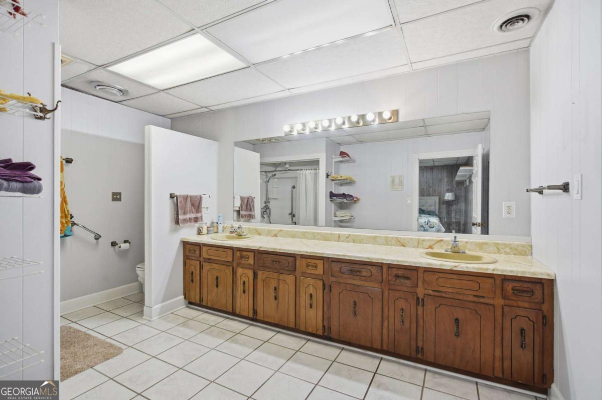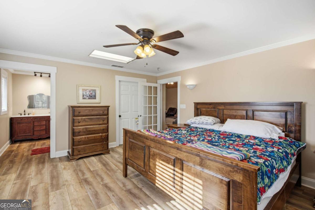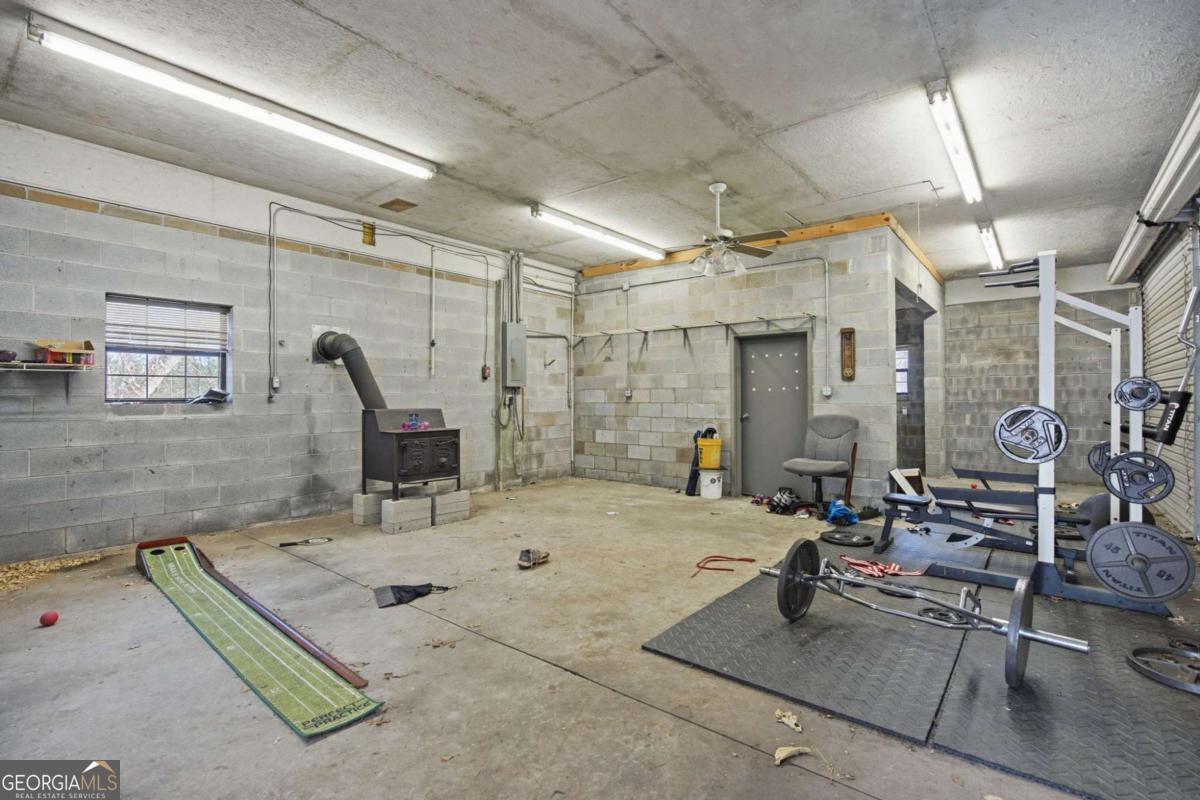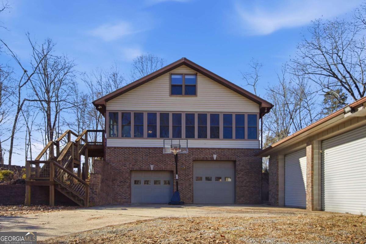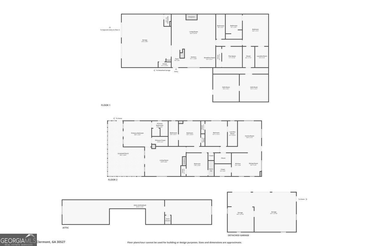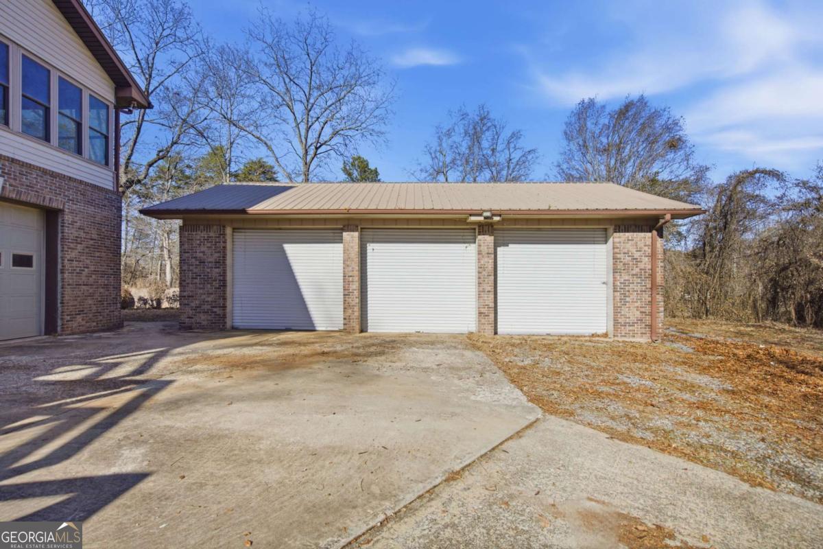 Exceptional one-of-a-kind estate in the highly sought-after North Hall School District, offering unmatched flexibility on 3.6 private acres. Thoughtfully designed as two homes in one, this property is ideal for multigenerational living, extended family, or income potential. The main level offers approximately 1,900 sq ft and features four bedrooms, including two owner's suites, providing rare versatility and comfort. Enjoy the spacious screened porch totaling approximately 615 sq ft. The finished basement level includes approximately 1,396 sq ft, offering two additional bedrooms and two full bathrooms great for flexible living space suitable for an in-law suite, guest quarters, or rental opportunity. A private safe room totaling approximately 458 sq ft is located in this basement level, adding an extra layer of security and peace of mind. This unique layout includes three total laundry rooms, enhancing convenience and functionality for multi-level or multi-family living. Additional features include an approx. 804 sq ft two car basement garage with a half bathroom, and a detached 3-car garage totaling approximately 772 sq ft, ideal for storage, workshop space, or recreational use. An approx. 1,100 sq ft unfinished walk-in attic space offers excellent future expansion or storage potential. The property also offers outstanding future development potential, with power and septic already in place for an additional dwelling, allowing for a guest house or secondary residence.