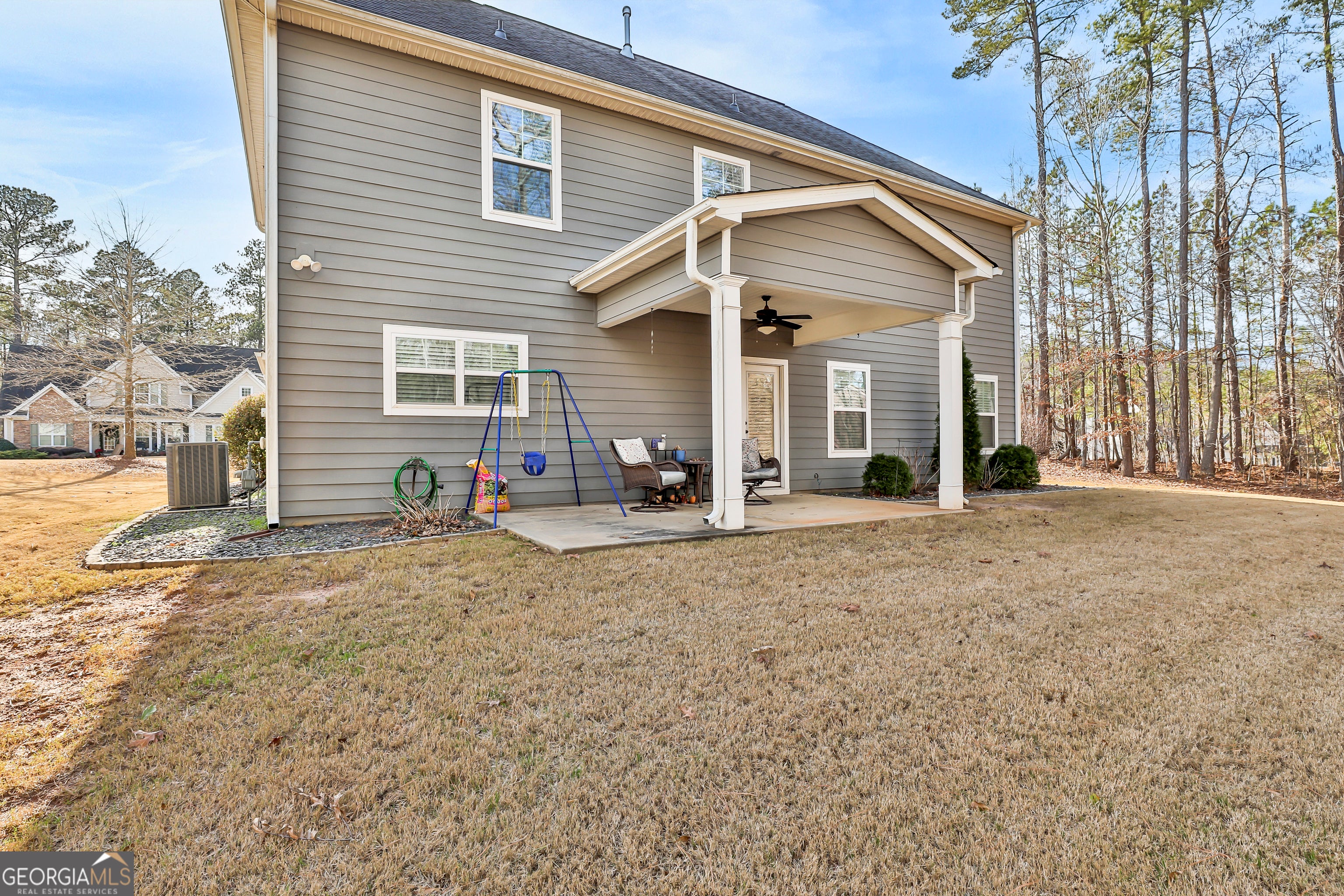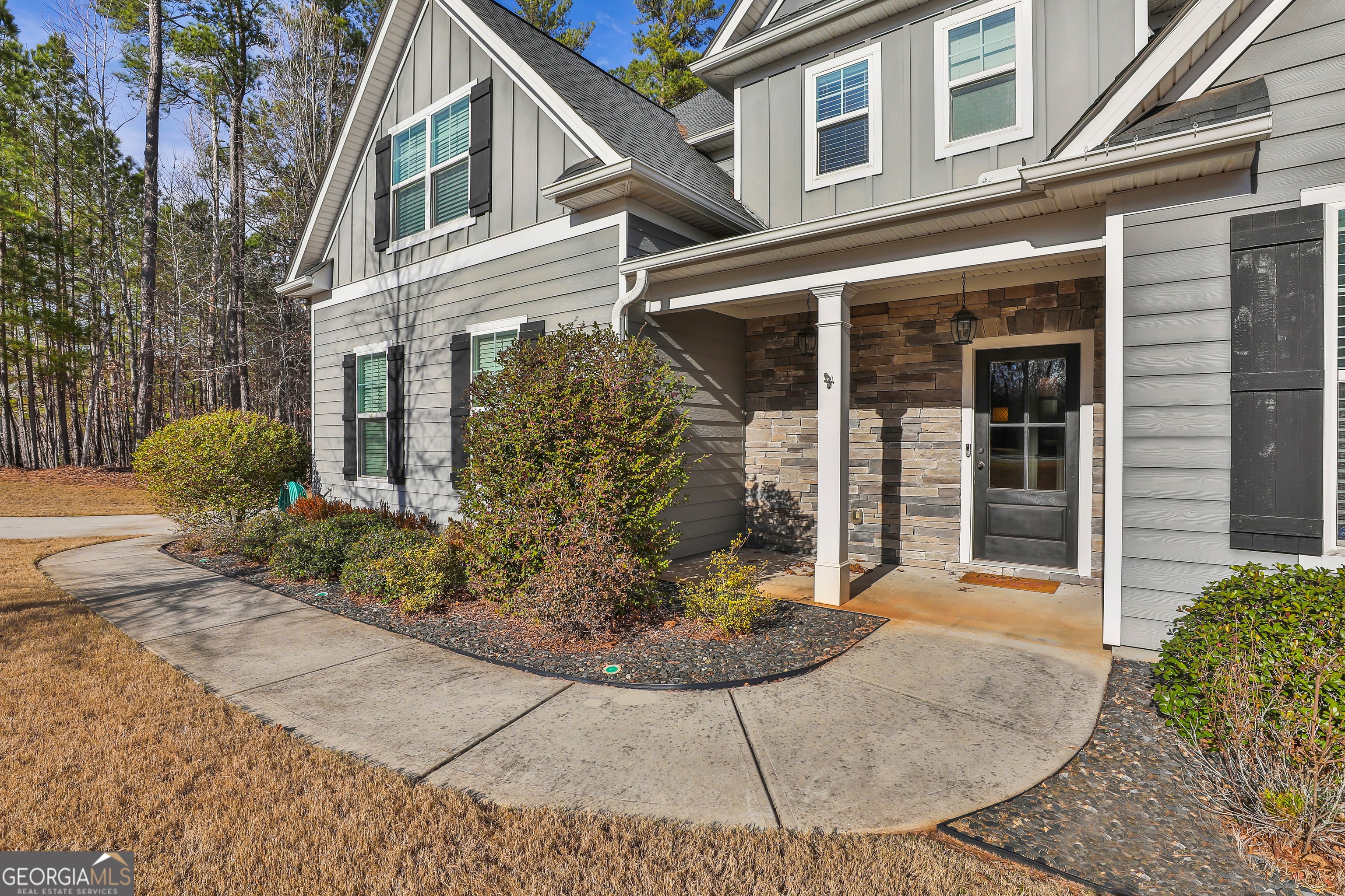 Lovely 4 bedroom, 2 1/2 bath craftsman style home built in 2016 convenient to Trilith, Fayetteville, and Peachtree City. For those looking for a well-maintained property, this is a one owner, pet free home which has been professionally cleaned twice a month. Main level includes office/living room, separate dining room, family room, powder room, and beautifully appointed kitchen w/ the latest in design, including granite and stainless steel appliances with gas range. Hardwoods in the foyer, powder room, dining room and kitchen. Second level offers a spacious owner's suite with a lovely bath with a tiled shower, separate soaking tub, double vanity, and a spacious walk in closet. Second level also includes three additional bedrooms, full bath, and the laundry room is located adjacent to the owner's suite for added convenience. Elegant lighting and upgrades throughout the home. The covered porch looks out over the private sodded backyard with a natural wooded buffer. The neighborhood amenities include pool, tennis, pickleball, basketball, playground and a walking path which connects to the public paths to the nearby schools and surrounding area.