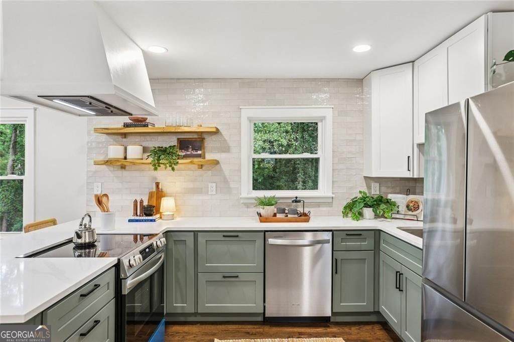 Check out this East Atlanta MCM home with 2025 style. There are new hardwoods throughout the upstairs AND downstairs in the finished basement. It's got all new systems including electric, hvac, plumbing, windows, and roof. There are three living rooms: two upstairs and one downstairs that's great for a gameroom. This place is huge! Wide open, remodeled kitchen with custom milled poplar shelving and new stainless steel appliances that is perfect for cooking and visiting with guests in the dedicated dining area. 4 bedrooms AND a separate office, 2 full bathrooms, TONS of storage, a giant laundry room, and a 2-car covered carport. Check out the pics of the floorplan and then come take a look in person. Estimated 2700+ square feet of total living space. It's truly a thoughtful layout with beautiful design touches. Sunlit rooms are everywhere and it really compliments the natural flow of the home. This house is perfect for lively gatherings or quiet evenings so you always feel right at home. There's even a slate-step walkway leading you to the backyard. Use Seller's preferred lender for an amazing deal, great interest rate and more affordable than you think! Taxes do not reflect homestead exemption.