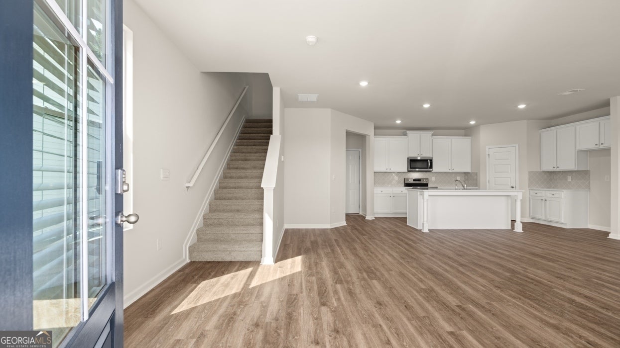 This PRIME LOCATION is just off Hwy 78, 5 minutes from the heart of downtown Monroe, with easy access to Athens and is just one hour east of Atlanta. Residents will also enjoy a state-of-the-art playground, table tennis, foosball, cornhole and beautiful walking trails. The "ASHTON FLOOR PLAN" offers 3 bedrooms, 2.5 bathrooms in a two-story home covering 1,950 sq feet. There is a rear entry 2-car garage with space for vehicles and some extra storage plus access from the back directly into a convenient mud room plus and adjoining powder room. From the inviting front porch, you are greeted by the ultimate in open concept living. An expansive family room and casual dining combination offer the ideal space for entertaining and ensure everyone stays connected. The adjoining kitchen includes contemporary cabinetry, quartz countertops, stainless steel appliances and a generous pantry. There is also bar stool seating at the island. On the second level, there is a generous flex space at the top of the stairs that you can personalize as a home office or study area, gaming station or secondary living room. With split bedrooms, you'll find the primary suite spans the entire width of the back of the home with dual closets and an adjoining bath with double vanities and a shower. There are two spacious secondary bedrooms on the front of the home, each with ample closet space. A shared hall bath and convenient laundry make it complete. Renderings serve as illustration only and may not depict actual homes.