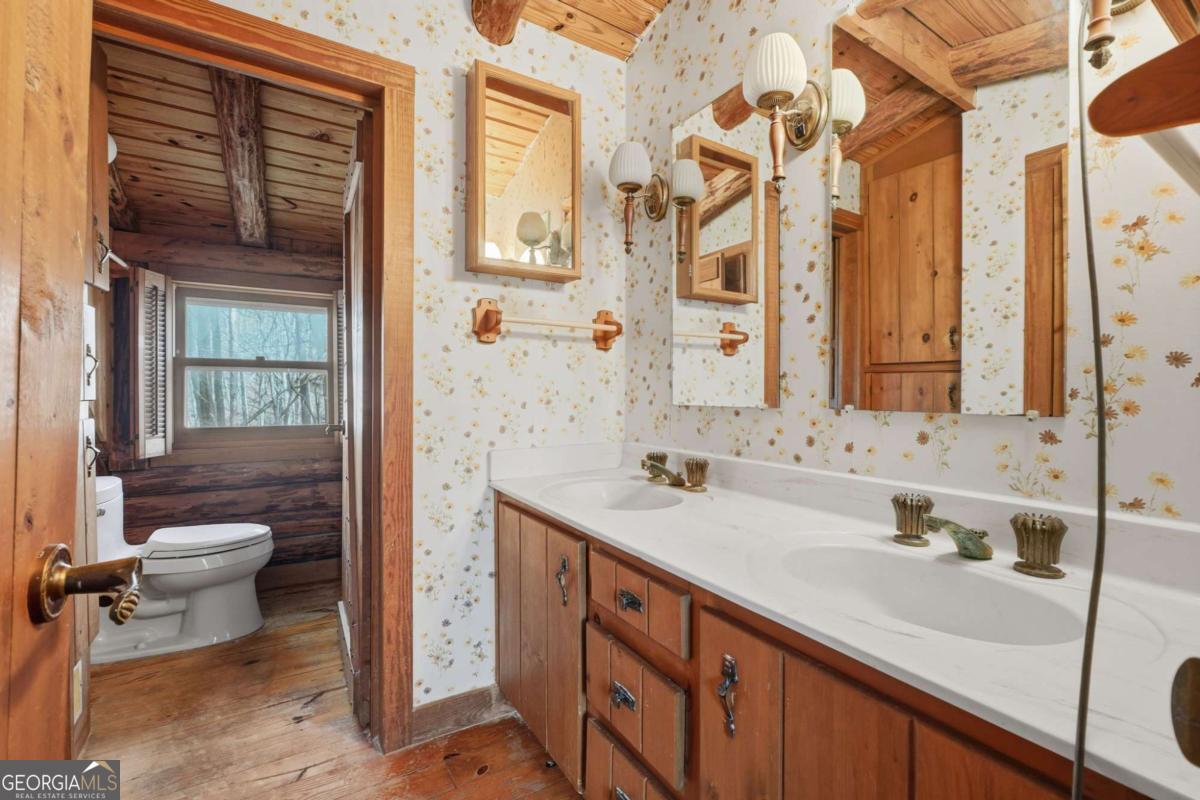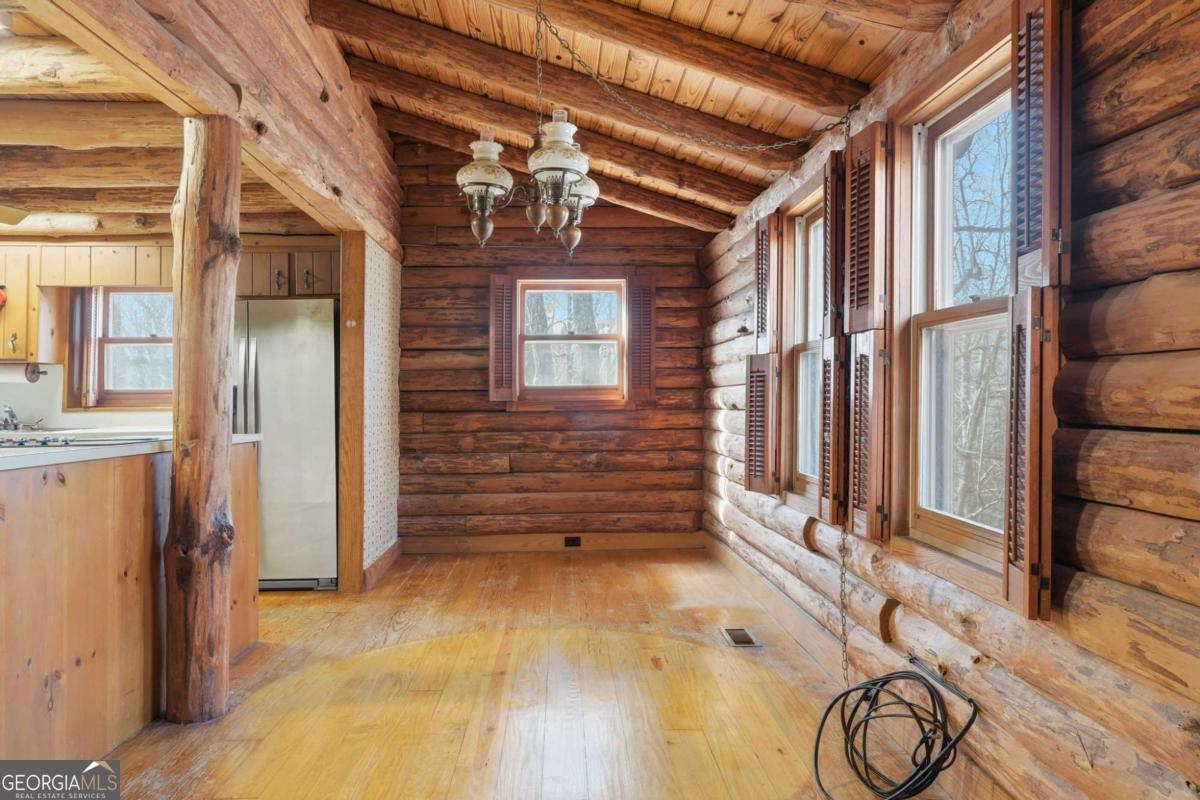This Authentic Log Cabin Kept in It's Original Condition, Promises Enormous Potential with It's Open Concept Layout. The Kitchen, Dining Area and Great Room are Anchored by a Massive Stone Fireplace and Vaulted Wood Ceiling! Heavy Log Beams Add to the Charm of the Home. Two Guest Bedrooms Share a Full Bath on the Main Level. The Upper Level Features a Secluded Primary Suite and Bath Along Side a Generous Loft with Views of the Great Room. A Spacious Screen Porch Reveals Seasonal Views of the Mountain Ridge and Ensures Privacy in the Spring and Summer Months. The Home Sits on an Oversized .54 Wooded Acre Lot. This is an Incredible Opportunity to Bring this Home Back to Life and Create a Warm Family Retreat Where Memories are Sure to be Made! There are No Rental Restrictions for this Property Making Ideal for a Short Term Rental. Gated Lake and Golf Community. Fabulous Amenities. Only 1 Hour North of Atlanta.