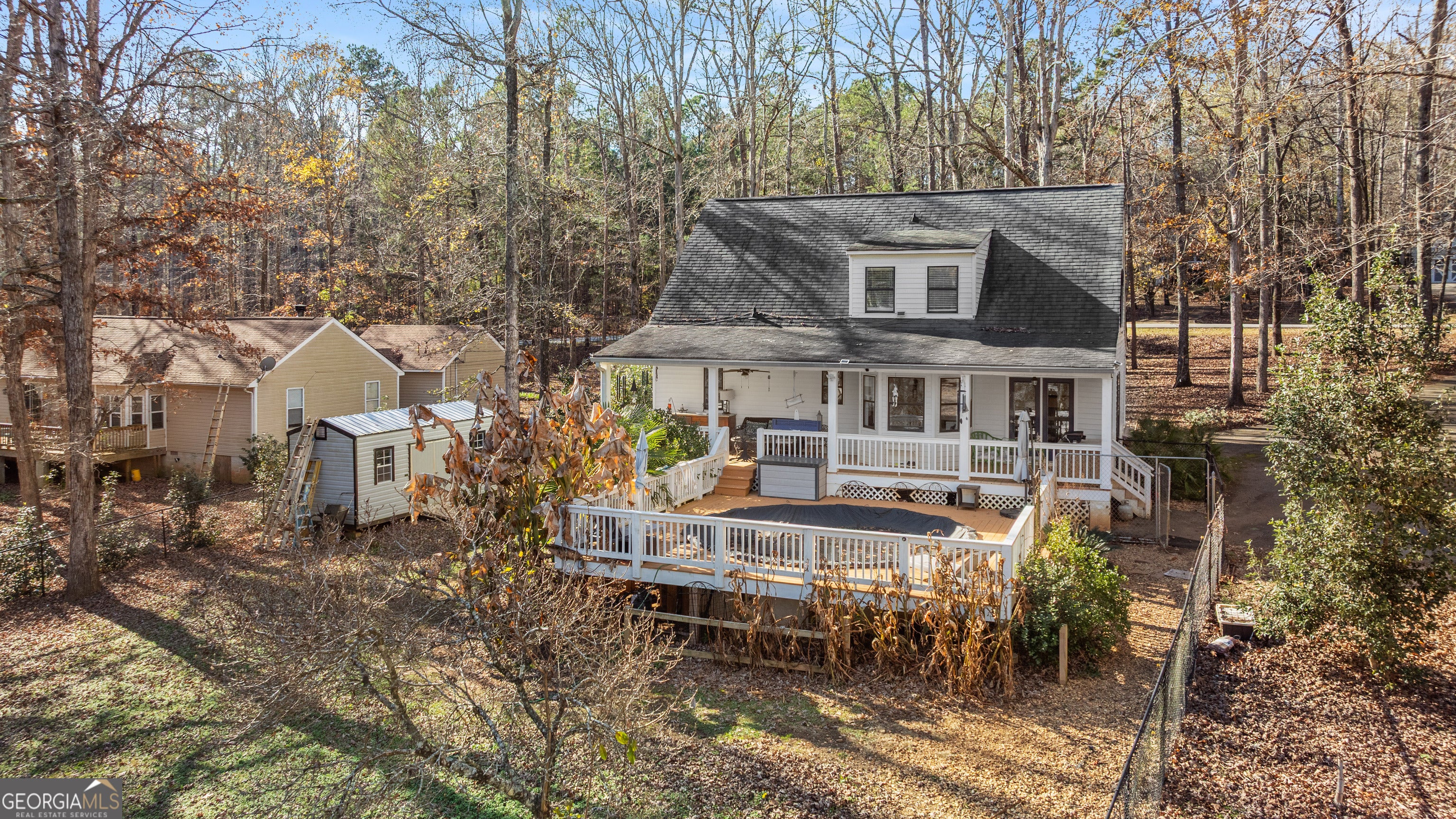 Welcome to 121 East River Bend Drive, a charming lakefront home on Lake Oconee in Eatonton, Georgia, offering a peaceful, wooded setting and relaxed outdoor living. With 4 bedrooms, 3 bathrooms, a private pool, and a wharf dock, this property is well suited for those seeking a comfortable lake retreat. The main level features a cozy living area and an open kitchen that connects easily to the living space. The primary bedroom is conveniently located on the main floor, providing ease of living for a full-time residence or weekend getaway. Upstairs, you'll find 3 additional bedrooms and a dedicated office, offering flexible space for guests, work-from-home needs, or hobbies. The bedrooms are efficiently sized, making this home easy to maintain and ideal for lock-and-leave living. Outdoor living is a true highlight. Covered front and back porches provide inviting spaces to relax and enjoy the natural, wooded surroundings, while the pool deck offers a private spot for warm-weather enjoyment. The wharf dock is well suited for kayaks, paddleboards, and fishing boats, making it easy to enjoy time on Lake Oconee. Located near Greensboro and Eatonton, with convenient access to dining, shopping, golf, and marinas, 121 East River Bend Dr offers a quieter lakefront setting with all the essentials for enjoying life at Lake Oconee. An excellent opportunity to own a lakefront home with a pool and dock in a desirable Lake Oconee location.