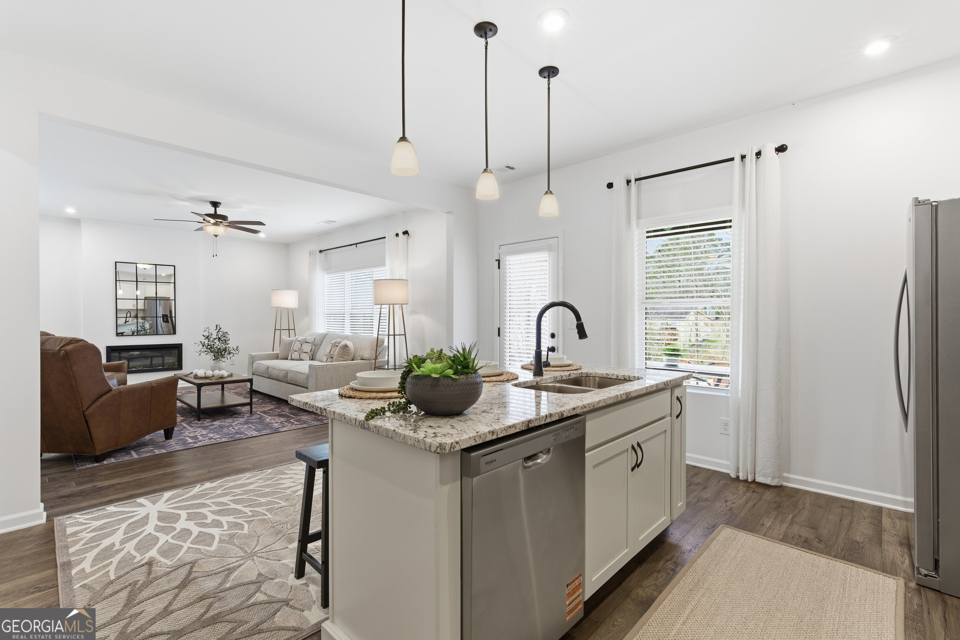 Move In Ready Home! Welcome home to this stunning new construction home in the sought-after Meadow Pines neighborhood minutes from downtown Dallas, GA. This beautifully designed 4-bedroom, 2.5-bath single family home offers 2,225 sq. ft. of modern living with thoughtful details throughout. At the heart of the home is a chef's kitchen featuring granite countertops, a large center island, stainless steel appliances, and abundant cabinet space-perfect for everyday living and entertaining. The open-concept layout flows seamlessly into the dining area creating a bright and inviting central gathering space. Upstairs, a spacious loft anchors all four bedrooms, offering a versatile area for a media room, play space, or home office. The oversized primary suite is a true retreat, complete with his-and-hers walk-in closets, a private water closet, and a large walk-in shower. Step outside to enjoy the covered patio with ceiling fan--ideal for relaxing or hosting guests year-round. **This home includes a stainless-steel refrigerator, washer and dryer, making move in easy and affordable.** With its modern design, functional layout, and convenient location near downtown Dallas, this home is the perfect blend of comfort and style. Don't miss your opportunity to own this beautiful new home in Meadow Pines! **Builder incentive includes: "Pick Your Perk" Options such as low interest rate or paid closing costs up to $15,000.