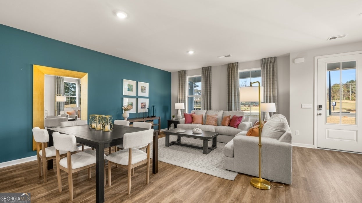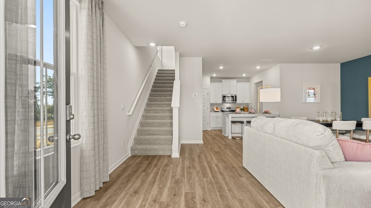 This PRIME LOCATION is just off Hwy 78, just 5 minutes from the heart of downtown Monroe, with easy access to Athens and only one hour east of Atlanta. Residents will also enjoy a state-of-the-art playground, table tennis, foosball, cornhole and beautiful walking trails. The "DENTON FLOOR PLAN" offers 3 bedrooms, 2.5 bathrooms in a two-story townhome covering 1,812 sq feet. There is a rear entry 2-car garage with space for vehicles and some extra storage plus access from the back directly into a convenient mud room. A front porch welcomes you home and offers the perfect outdoor area to relax. From the front door, you are immediately greeted by an open family room and casual dining space. The adjoining kitchen includes contemporary cabinetry, quartz countertops, stainless steel appliances and a generous pantry making it not only functional but beautiful. Upstairs includes a private bedroom suite with generous closet that spans the entire width of the front of the home. The adjoining bath includes dual vanities and a shower. There are two spacious secondary bedrooms on the rear of the home, each with ample closet space. A shared hall bath and convenient laundry round out the second level. Renderings serve as illustration only and may not depict actual homes.