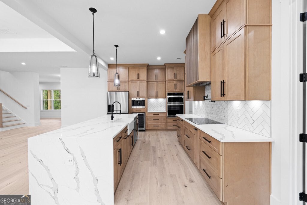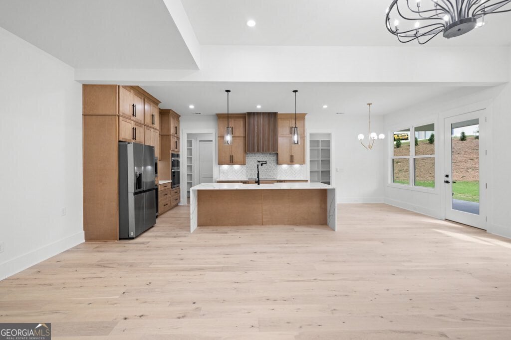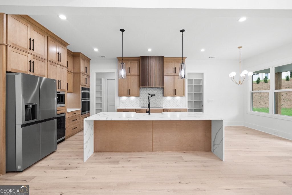 Modern New Construction in Winder!! Come see this beautiful new constructions with the latest trends, built with the modern homeowner in mind on 1.58 acres!! NO HOA!! 4Br/4.5Ba with XL 3 car garage- 26ft deep and 9ft tall, perfect for any large truck or SUV and equipped with electric car charger outlet. This dream kitchen features a quartz waterfall island, marble backsplash, pot filler, hood range, and a large walk in pantry with built in shelves and butcher block counter ready for tucking away bulky kitchen appliances. If you are a latte lover, you will appreciate the built in WOLF Espresso Machine and if you're on a health kick, the built in air fryer will be your go to kitchen appliance!! The high quality engineered hardwoods can be sanded and stained twice. All 5 bathrooms feature top level quartz countertops and modern tiled floors. Upstairs, you will enjoy the second living room and a junior master suite! Backyard is flat and ready for your pool!