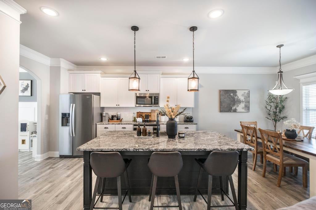 Welcome home to 306 Harley Farms Drive! This spacious 5-bedroom, 3-bath residence is conveniently located just off Hwy 247 in Bonaire. Inside, you'll find high ceilings, beautiful flooring, and stylish French doors that add both charm and character. The open-concept kitchen features an island and flows seamlessly into the living area, making it ideal for entertaining family and friends. The primary suite offers a custom-designed closet, while thoughtful upgrades continue throughout the home.