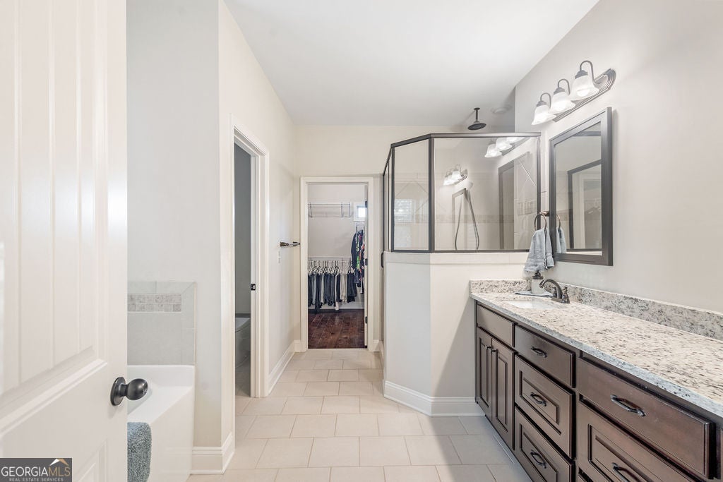 - Interior FeaturesTray Ceiling(s), High Ceilings, Double Vanity, Soaking Tub, Separate Shower, Tile Bath, Walk-In Closet(s), Master On Main Level, Two Story Foyer, Split Bedroom Plan