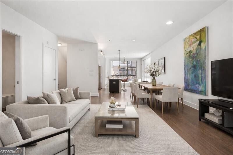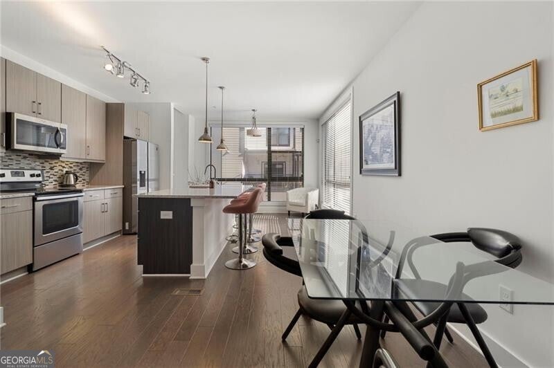 Experience modern Intown living in this stunning 3-bedroom, 3.5-bath END-UNIT townhome located in the heart of Reynoldstown-just steps from the Beltline and MARTA! This rare find offers privacy, upgraded finishes, and multiple outdoor living spaces in a quiet, walkable community. The entry level features a welcoming foyer, coat and utility closet with extra storage, and a 2-car tandem garage. The main level boasts a light-filled open floor plan with hardwood floors, a spacious living area that opens to a private deck, and a chef's kitchen with a large island, abundant cabinetry, stainless steel appliances, expansive windows and a separate dining area. Upstairs, the primary suite impresses with space for a king bed, a spa-like bath with a double vanity and large shower, and a walk-in closet. A secondary bedroom with an ensuite bath and walk-in closet, plus a laundry closet complete this level. The top floor is a showstopper, offering a third bedroom or flexible space for a home office, gym, or media room, along with a full bath, large closet, and a private rooftop deck perfect for entertaining. The community also features access to a wonderful pool, ideal for relaxing and connecting with neighbors during warmer months. Enjoy an amazing Intown location where the Beltline, top restaurants, and local hotspots are just steps from your door, along with easy access to highways, Midtown, and Downtown. Modern style, thoughtful design, and an unbeatable location-this home truly has it all!